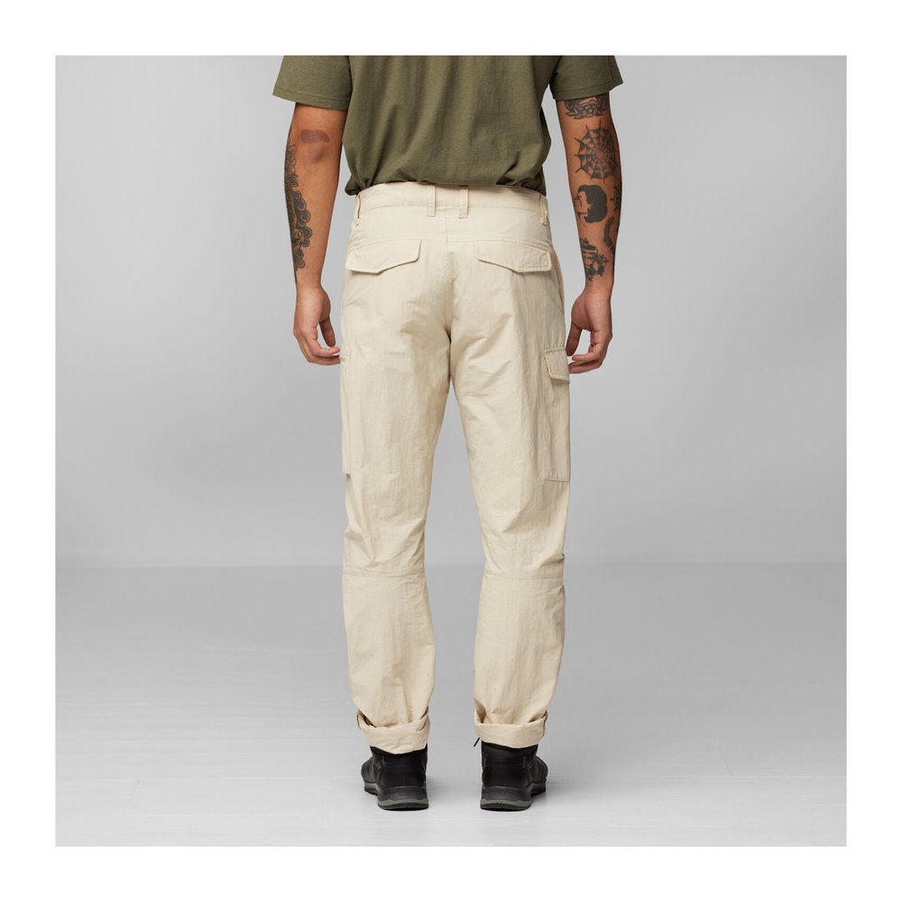 FJÄLLRÄVEN Travellers MT Trousers Men sind leichte und bequeme Allzweckhosen, ideal für Stadt und Wanderungen. Gefertigt aus MT Eco, einem kühlen, schnell trocknenden, knitterfreien und feuchtigkeitsregulierenden Stoff aus recyceltem Polyamid und Bio-Baumwolle. Die Hose besitzt einen elastischen Bund mit Mesh-Futter, eine entspannte Passform mit vorgeformter Kniepartie und schmal zulaufendem Bein. Zahlreiche praktische Taschen, darunter großzügige Beintaschen, sorgen für Stauraum. Die ungekürzten Beinabschlüsse sind einfach anpassbar.