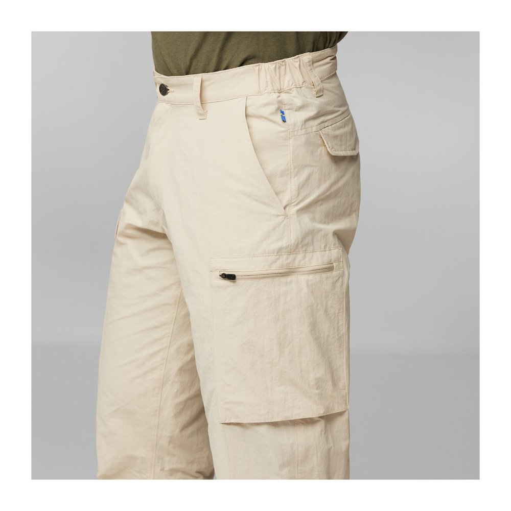 FJÄLLRÄVEN Travellers MT Trousers Men sind leichte und bequeme Allzweckhosen, ideal für Stadt und Wanderungen. Gefertigt aus MT Eco, einem kühlen, schnell trocknenden, knitterfreien und feuchtigkeitsregulierenden Stoff aus recyceltem Polyamid und Bio-Baumwolle. Die Hose besitzt einen elastischen Bund mit Mesh-Futter, eine entspannte Passform mit vorgeformter Kniepartie und schmal zulaufendem Bein. Zahlreiche praktische Taschen, darunter großzügige Beintaschen, sorgen für Stauraum. Die ungekürzten Beinabschlüsse sind einfach anpassbar.