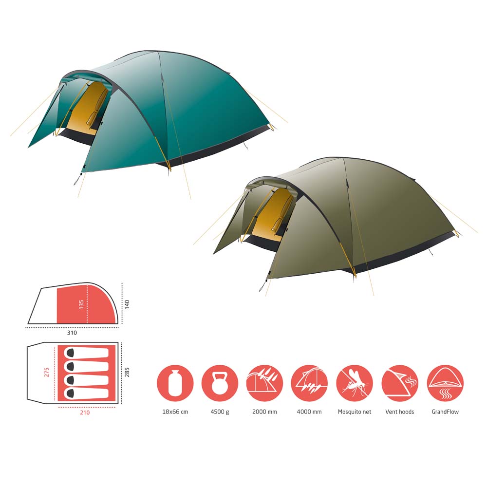 Das GRAND CANYON Topeka 4 ist für die Beherbung von bis zu fünf Personen konzipiert. In der großen Apsis vor dem Innenzelt ist zusätzlicher Stauraum für Gepäck oder Ausrüstung vorhanden. Gewährleistet ist ein hervorragendes, anpassbares Innenklima dank der GRAND CANYON GrandFlow-Belüftung an der Außenplane. Das Innenzelt kann bei trockenem Wetter separat aufgestellt werden. Toll für Rad-, Kajak- und Campingausflüge am Wochenende.