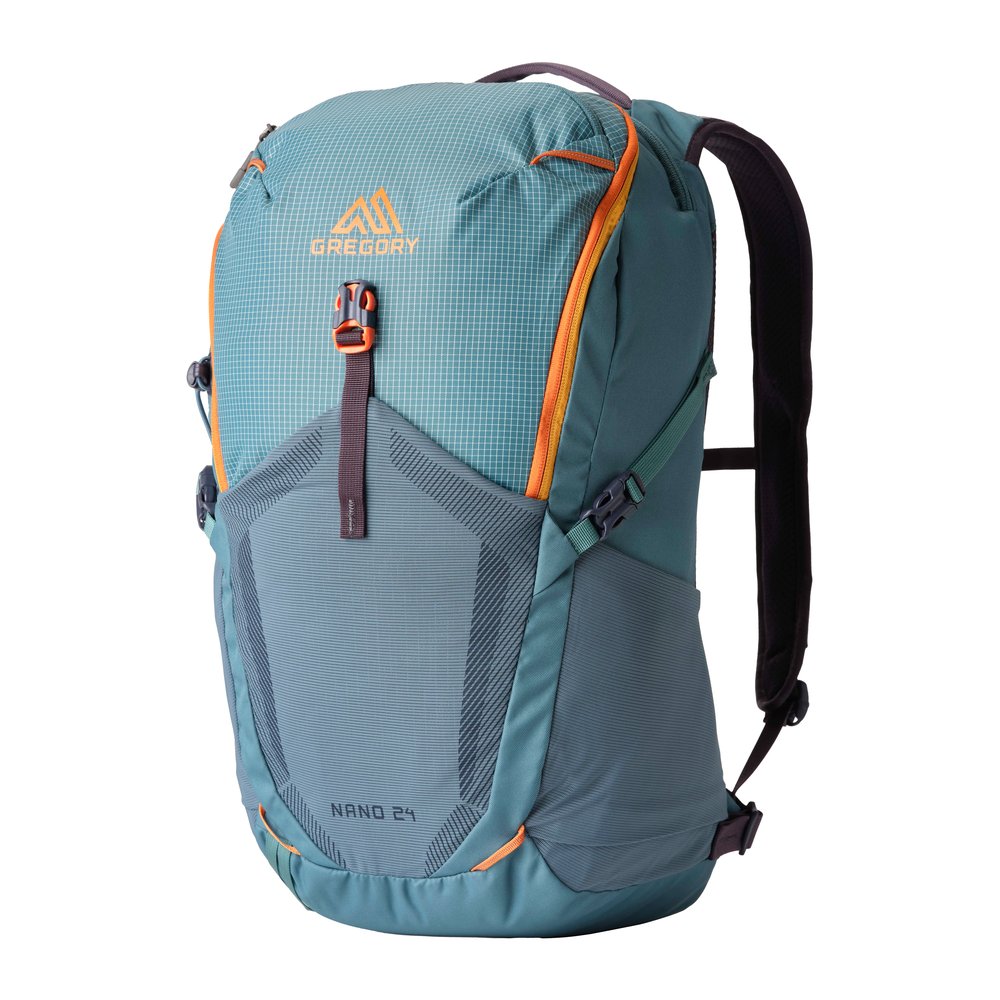GREGORY Nano 24 ist ein geräumiger Tagesrucksack, der mit seinem großen Hauptfach und vielseitigen Taschen ausreichend Platz für lange Reisetage, den Arbeitsweg oder Feierabendwanderungen bietet. Eine separate Reißverschlusstasche eignet sich für Trinksysteme oder Tablets, während elastische Front- und Seitentaschen zusätzlichen Stauraum schaffen. Das atmungsaktive, formgestanzte Rückenteil und gepolsterte Airmesh-Schultergurte mit Brustgurtschnalle sorgen für angenehmen Tragekomfort. Für mehr Sicherheit sind reflektierende Bandschlaufen und eine Lampenbefestigung integriert.