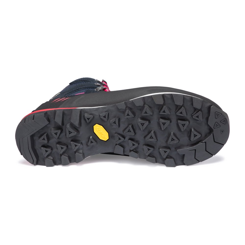 HANWAG Makra Pro GTX Women ist ein leichter und stabiler Trekkingschuh, der speziell für anspruchsvolle Bergtouren mit Gletscherpassagen und Hoch- sowie Felstouren konzipiert wurde. Mit seiner wasserdichten GORE-TEX Membran und dem langlebigen Perwanger Oberleder bietet der Schuh Schutz und Komfort unter extremen Bedingungen. Die Zwischensohle kombiniert PU, TPU und EVA, wodurch eine ausgezeichnete Dämpfung und Präzision im Antritt ermöglicht wird. Besonders hervorzuheben ist die Steigeisenauflage an der Ferse, die den Schuh steigeisenfest macht, sowie die Vibram® Makra Laufsohle, die für exzellenten Grip sorgt. Die innovative Hanwag 2 Zone Lock-Technologie mit mechanischer Klemme bietet eine verbesserte Fixierung des Fersenbereichs, die zuverlässiger ist als herkömmliche Klemmhaken. Zudem sorgt die optimierte Ghilly-Schnürung im Zehenbereich für perfekten Halt und Stabilität. Der Alpine Wide-Leisten bietet mehr Komfort im Vorfußbereich, ohne die Kletterperformance und Präzision zu beeinträchtigen.