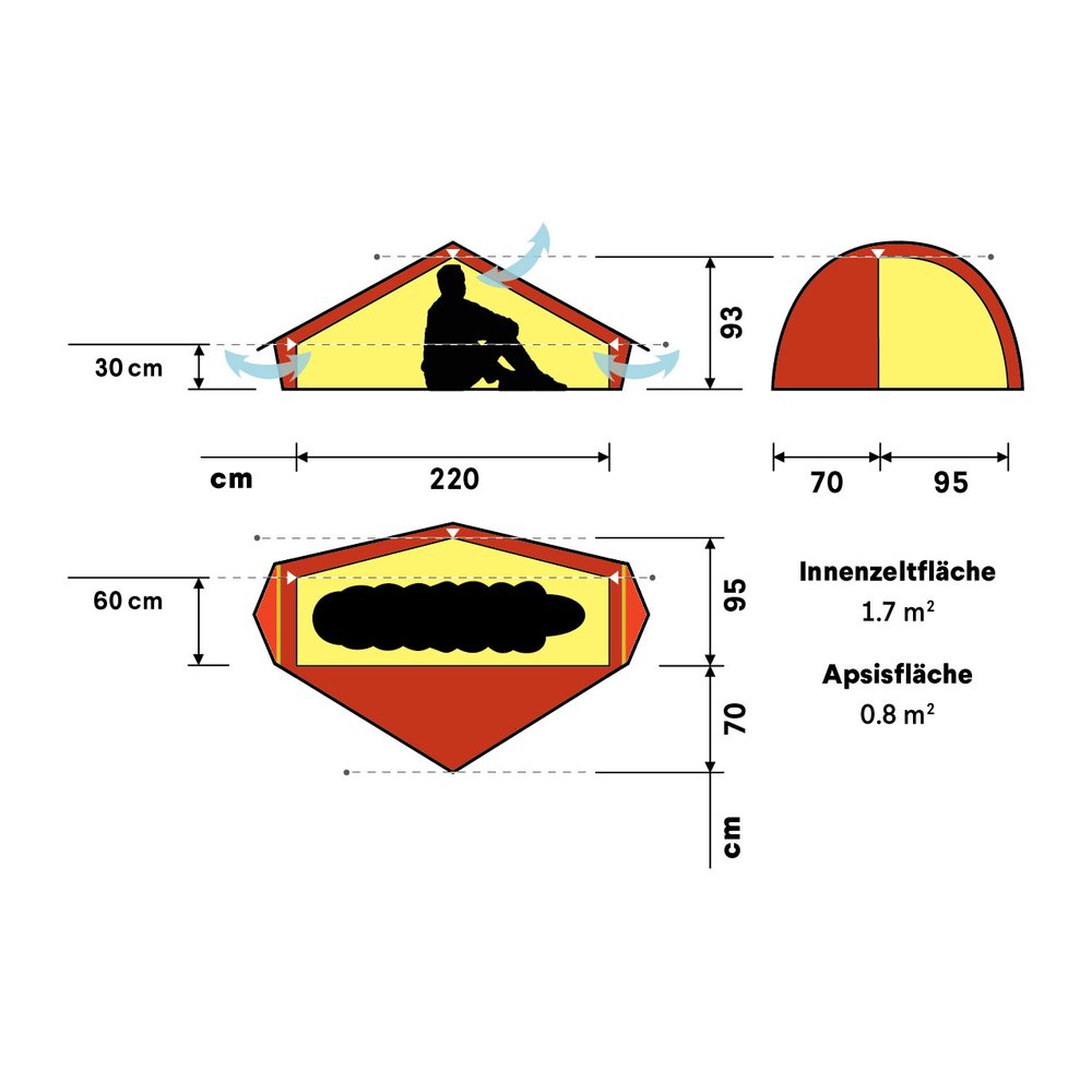 • Basisgewebe Außenzelt: 30D High Tenacity Ripstop Nylon 66