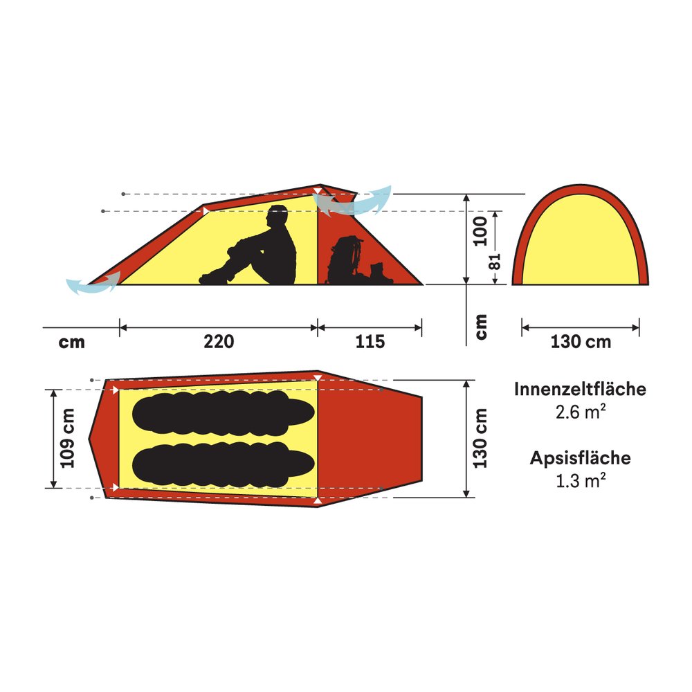 - Gekoppeltes Innen- und Außenzelt für schnellen Aufbau