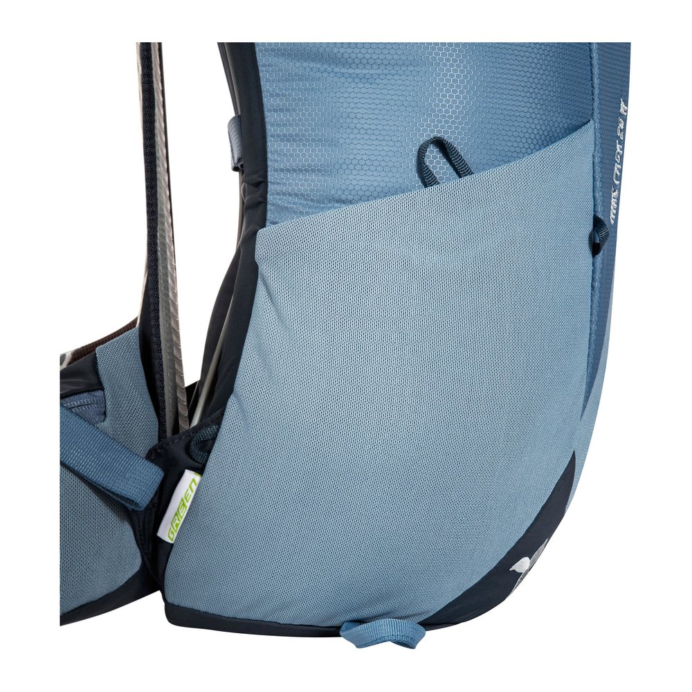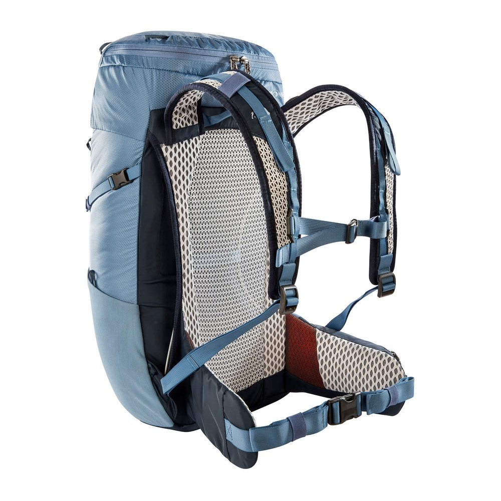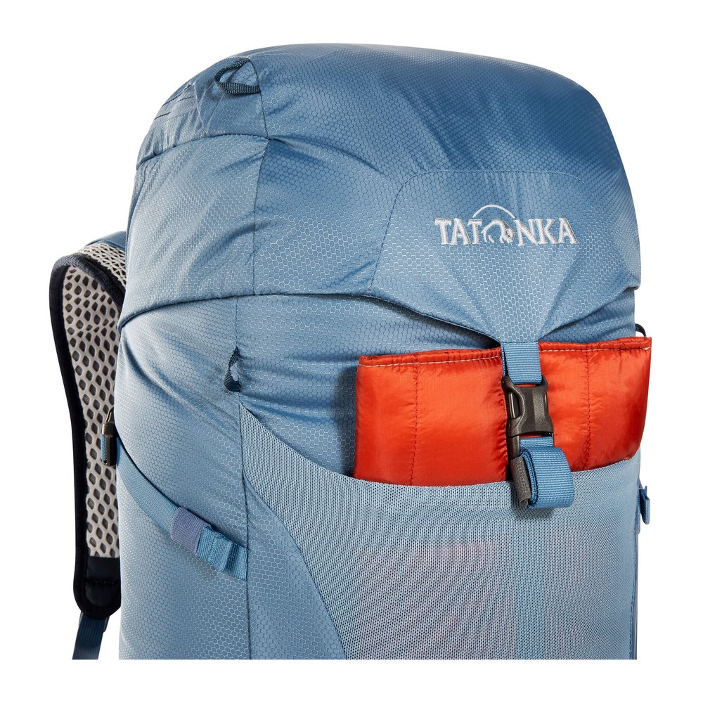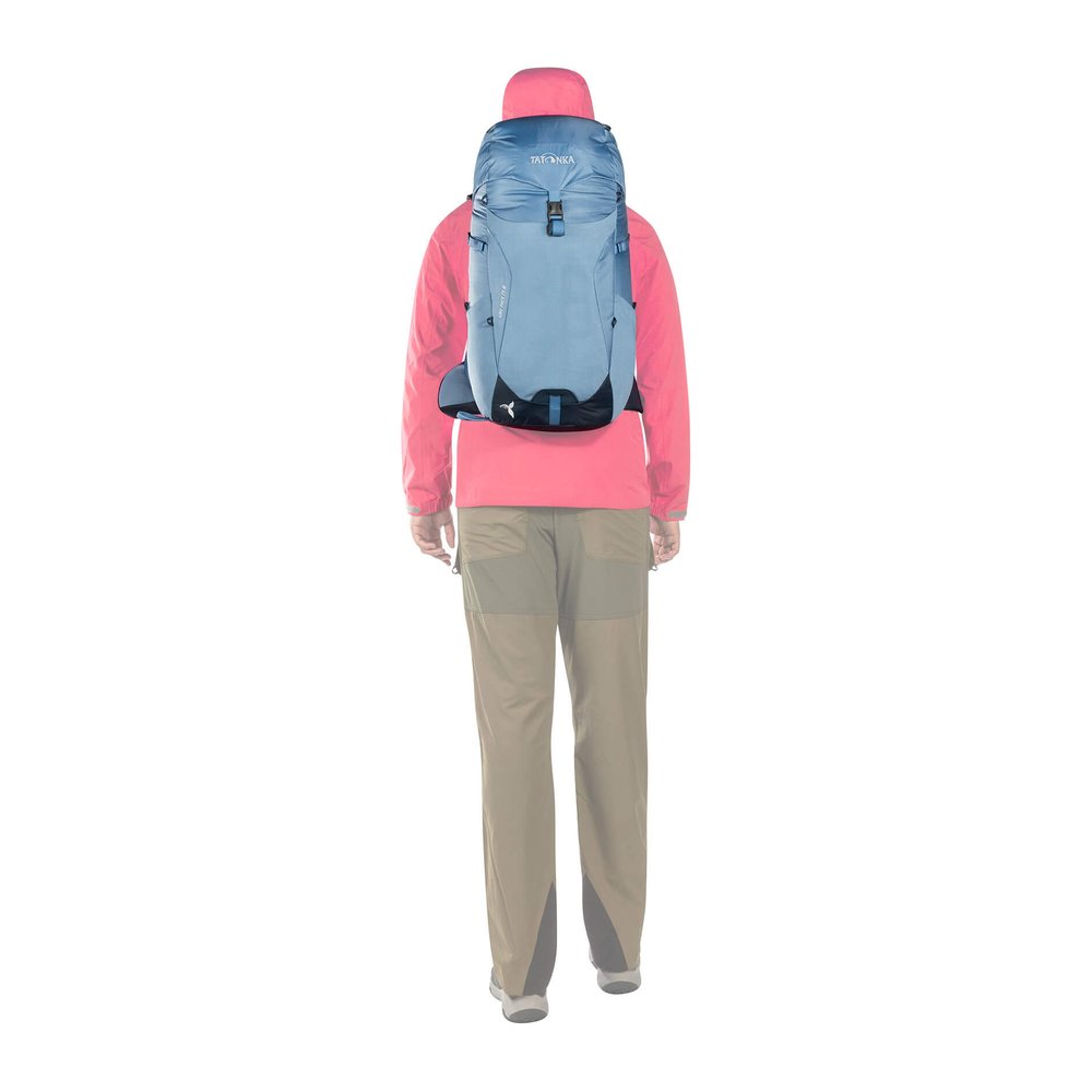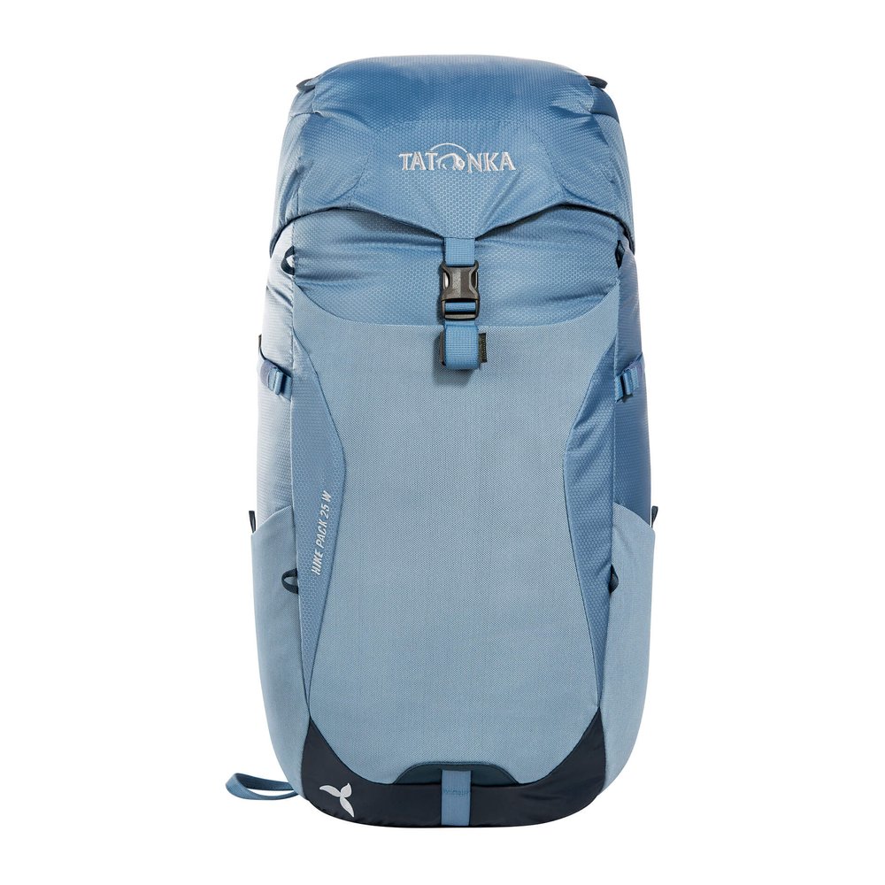 Der Tatonka Hike Pack 25 Women ist ein komfortabler Damen-Wanderrucksack mit Netzrücken, der auf Tageswanderungen mit einem Volumen von 25 Litern viel Stauraum für Ausrüstung bietet. Das leichte Frame Vent-Rückensystem passt sich flexibel an Bewegungen an und sorgt mit einem Abstandsnetz für eine angenehme Belüftung des Rückens. Die an die weibliche Anatomie angepassten Schultergurte, die seitlich an der Brust vorbeiführen, sowie Bauch- und Brustgurt, fixieren den Rucksack sicher am Körper. Ausrüstung lässt sich im Hauptfach und in verschiedenen Außentaschen verstauen. Zudem verfügt der Hike Pack 25 Women über eine Vorbereitung für ein Trinksystem und eine externe Befestigungsmöglichkeit für Wanderstöcke. Eine Regenhülle ist im Deckelfach integriert, und der Rucksack ist mit einer PFAS-freien Ausrüstung versehen.