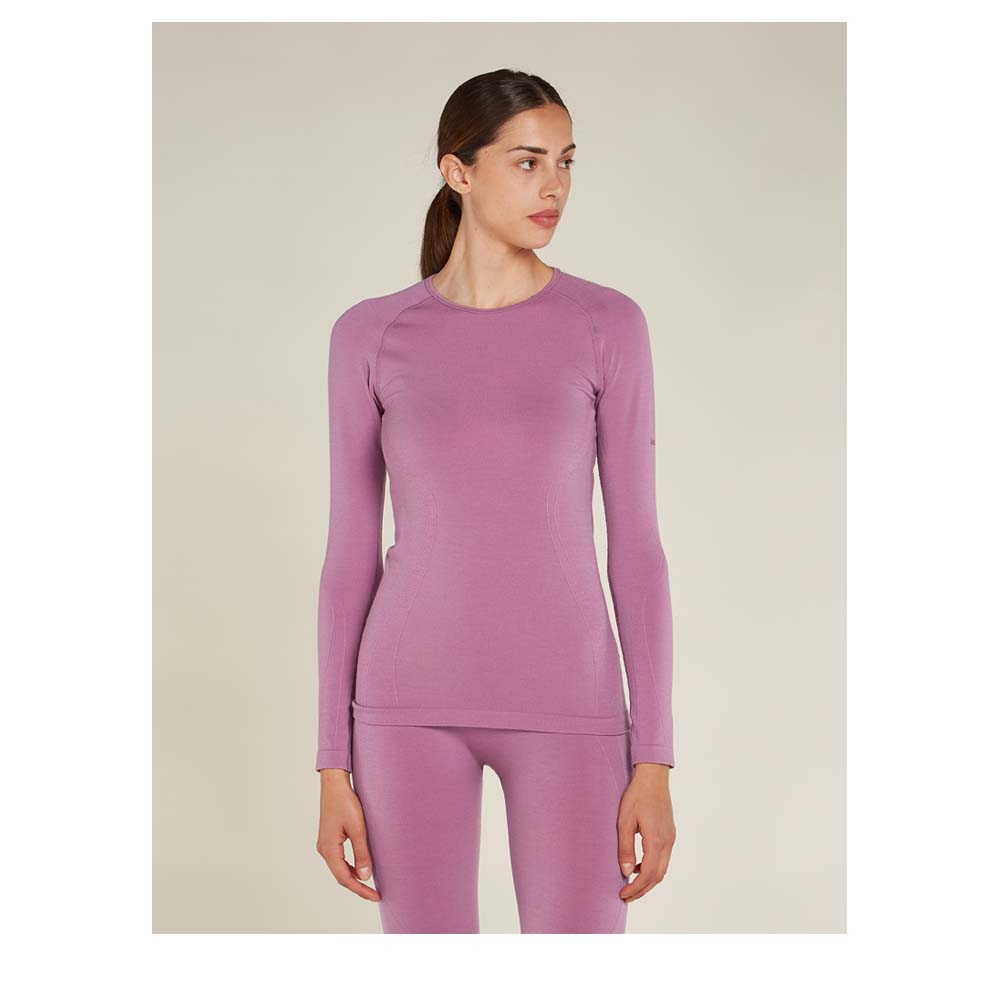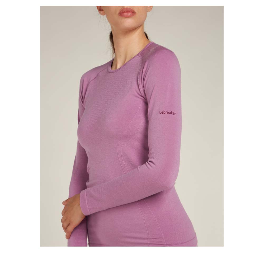 Ein ultrabequemes Damen Langarmshirt von Icebreaker, das sich dank des nahtlosen Designs und des hochatmungsaktiven Merino-Mischgewebes wie eine zweite Haut anfühlt, das Langarmshirt hat eine körpernahe Passform und verfügt über bodymapped Mesh-Einsätze für zusätzliche Belüftung.