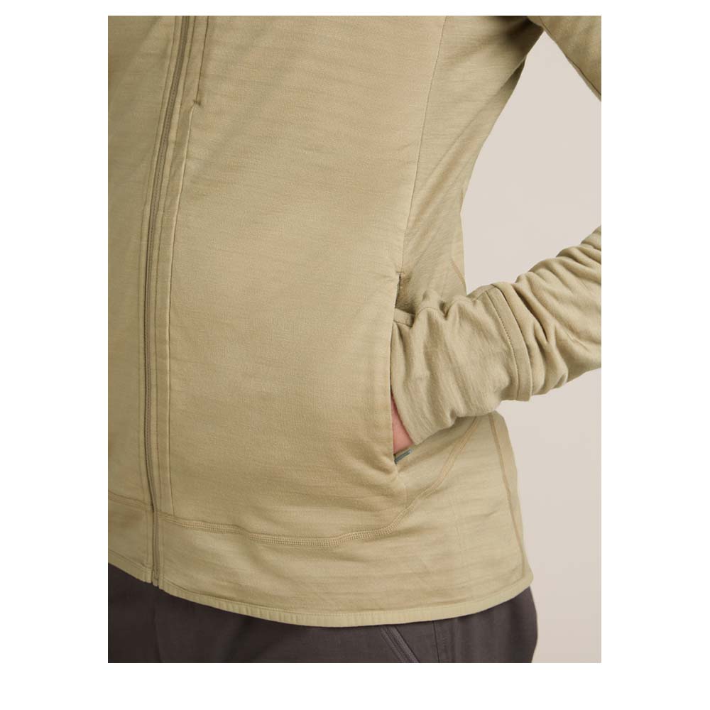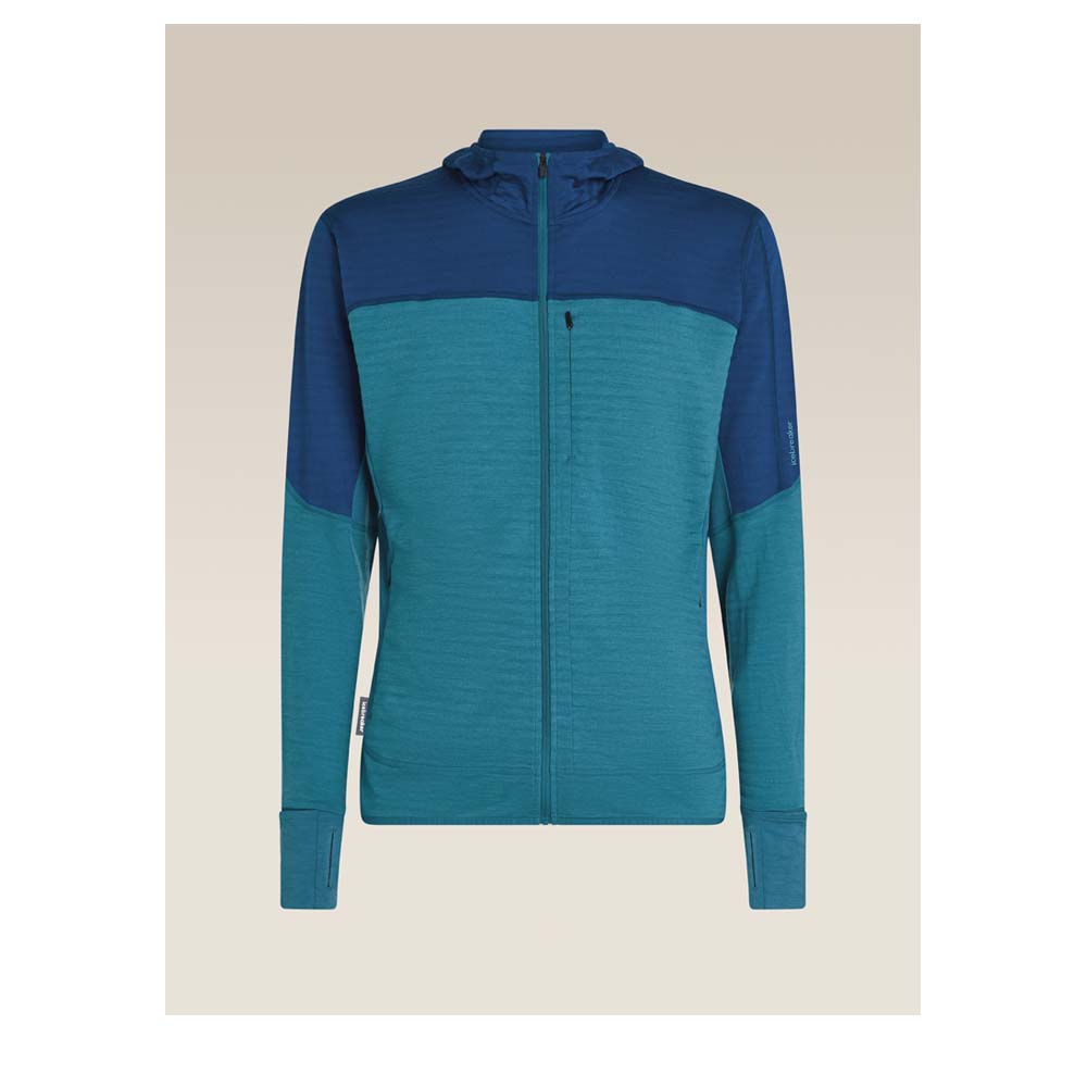 Der ICEBREAKER Merino Blend 300 RealFleece™ Descender LS Zip Herren Hoodie ist ein hochleistungsfähiger Mid-Layer, der speziell für Performance-Aktivitäten wie Laufen oder Wandern bei Kälte konzipiert wurde. Die technologische Basis bildet die innovative RealFleece™-Mischung, die die besten Eigenschaften von zwei Fasern vereint: 60 % TENCEL™ Lyocell und 40 % Merinowolle im Hauptteil. Diese Kombination gewährleistet eine exzellente Wärmeisolierung (300 g/m²) bei minimalem Gewicht, hohe Atmungsaktivität und ein besonders weiches Gefühl auf der Haut, unterstützt durch die natürliche Geruchshemmung der Merinowolle. Die Jacke bietet maximalen Komfort durch ihre durchdachten Design-Details: eine eng anliegende Kapuze, die perfekt unter den Helm passt, sowie Daumenschlitze und integrierte Fausthandschuhe an den Ärmelenden, die die Hände warm halten und das Hochrutschen der Ärmel verhindern. Der körpernahe Slim Fit-Schnitt sorgt zusammen mit einem Zwickel für uneingeschränkte Bewegungsfreiheit, während die versetzten Schulternähte und Flachnähte Reibung und Scheuern minimieren – ideal beim Tragen eines Rucksacks. Praktische Elemente wie eine Brusttasche und zwei gesicherte alpine Einschubtaschen runden das funktionale Profil ab, während der abgesenkte Saum zusätzlichen Schutz vor Kälte und Zugluft bietet.