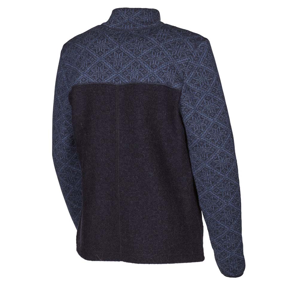 Die IVANHOE Ellie Fullzip ist eine warme und kuschelige Damen Wolljacke mit einem einzigartigen Design. Sie kombiniert eine glatte, gewalkte Wollqualität am Körper mit einer Jaquard-Strickpasse und gemusterten Ärmeln, die aus 100 % mulesingfreier Wolle gefertigt sind. Das Garn ist zudem Bluesign®-zertifiziert, was die Nachhaltigkeit unterstreicht. Die Jacke verfügt über einen durchgehenden Reißverschluss mit OEKO-TEX®-Zertifizierung und praktische Reißverschlusstaschen an den Seiten. Ein kleines Jacron-Logo-Badge am linken Ärmel rundet den Look dezent ab.