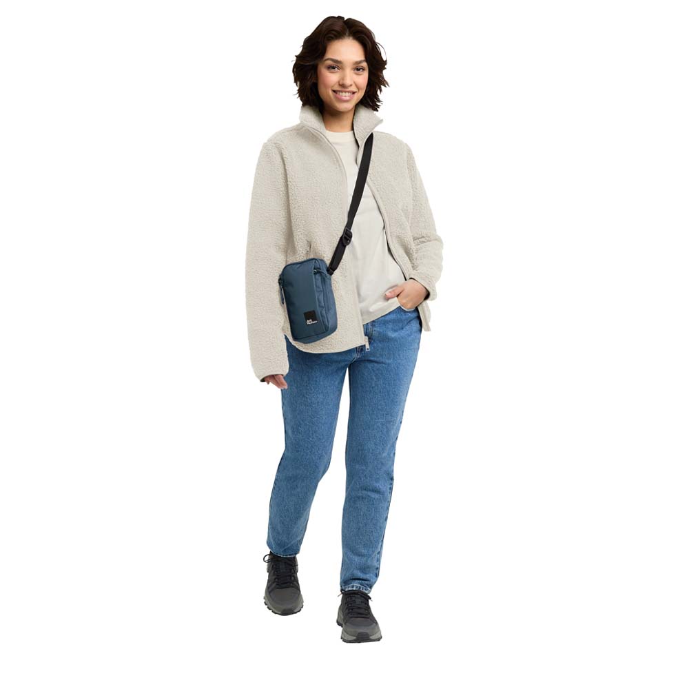 Die Jack Wolfskin High Curl Jacket für Damen ist ein vielseitiger Begleiter für Outdoor-Abenteuer. Gefertigt aus extra weichem SHERPA FLEECE, hält diese atmungsaktive Fleecejacke besonders warm und sorgt für ein angenehmes Tragegefühl. Sie kann sowohl als isolierende Zwischenschicht unter einer Jacke als auch einzeln getragen werden. Der hohe Kragen schützt den Halsbereich zuverlässig vor Kälte, während die beiden Hüfttaschen mit Reißverschluss sicheren Stauraum für Wertgegenstände bieten und ideal zum Aufwärmen der Hände sind.