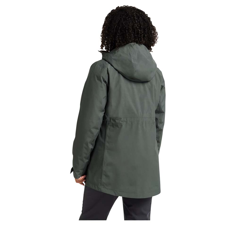 Diese 3-in-1-Jacke kombiniert eine wetterfeste Außenjacke mit einer warmen Daunen-Innenjacke. Die Außenjacke besteht aus TEXAPORE ECOSPHERE PRO, einem recycelten Material, das nicht nur wasserdicht und atmungsaktiv ist, sondern auch nachhaltig. Zusätzlich schützen die wasserdichten Reißverschlüsse vor Feuchtigkeit. Dank des längeren, femininen Schnitts und des mittigen 2-Wege-Reißverschlusses kann die Passform individuell angepasst werden, was für mehr Bewegungsfreiheit und Komfort sorgt.