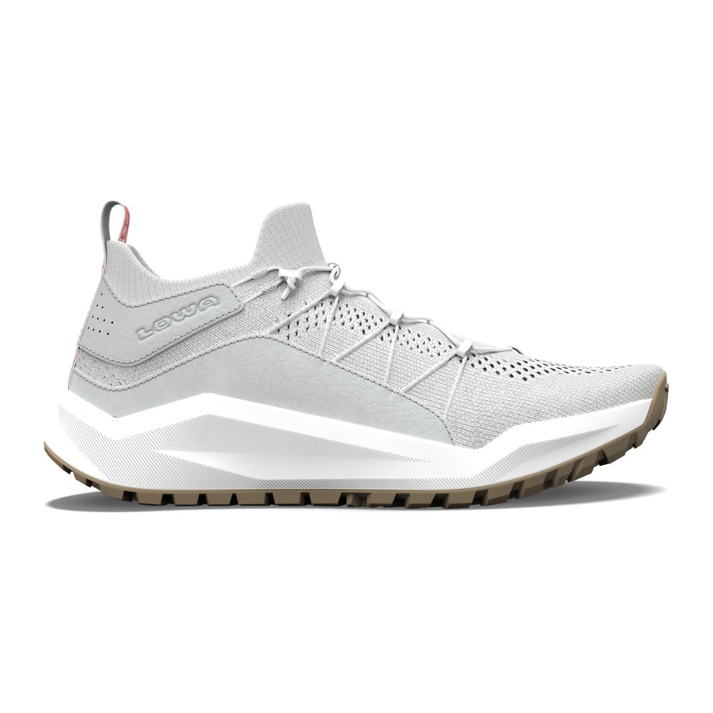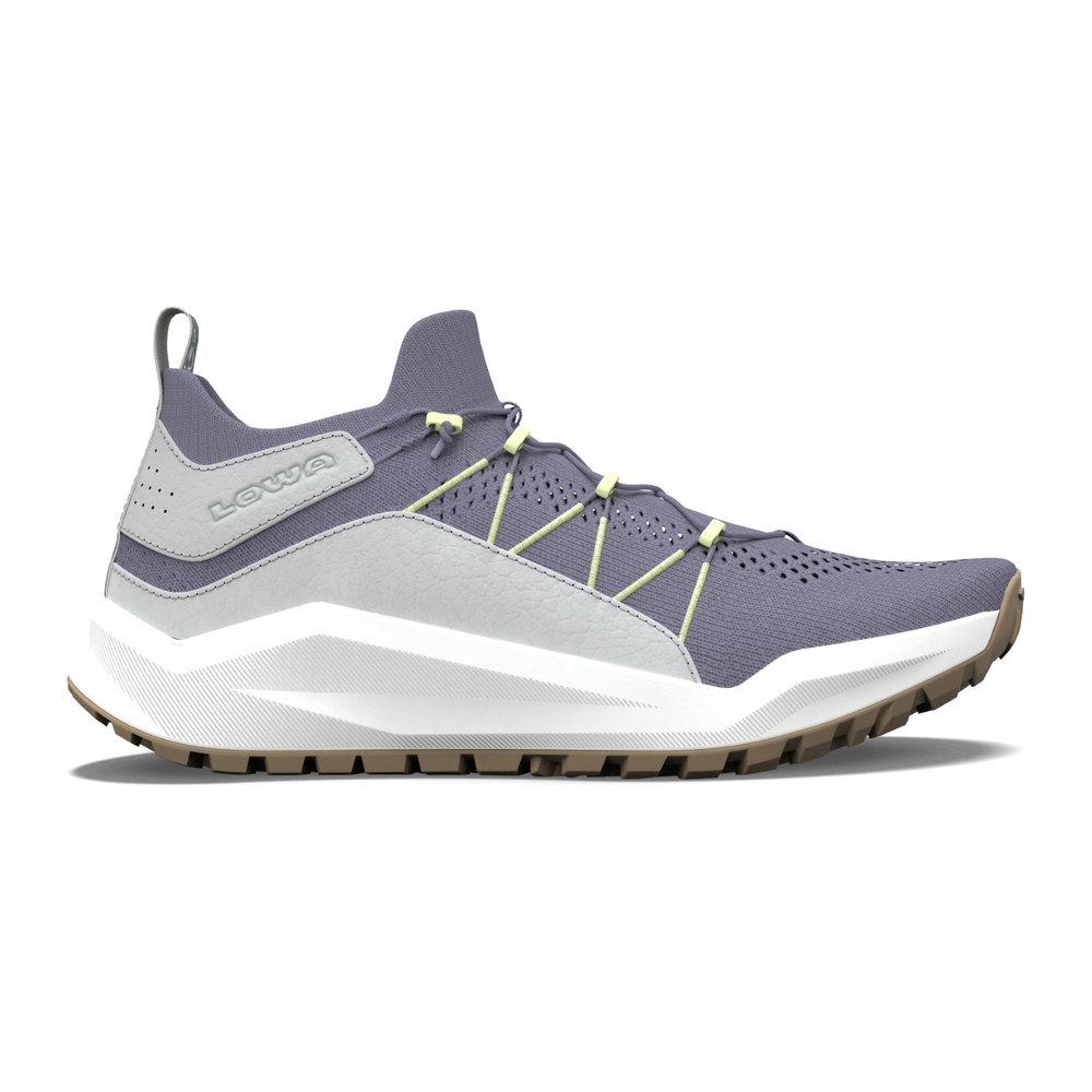 LOWA Kaloya Knit Ws - Outdoor-Sneaker bieten durch ihren leichten Aufbau und die minimalistische Konstruktion außergewöhnliche Flexibilität. Die innovative Zwischensohle aus leichtem Zuckerrohr-EVA sorgt für exzellente Dämpfung und ein angenehmes Abrollverhalten, was den natürlichen Komfort dieses Schuhs unterstreicht. Der atmungsaktive Baumwollstrick mit hochwertigen Lederapplikationen gewährleistet eine perfekte Passform und ein angenehmes Tragegefühl, besonders an heißen Sommertagen oder auf Reisen. Das Schnürsystem aus recyceltem PET und Polyester profitiert von jahrelanger Erfahrung im Alpinschuhbereich und garantiert eine sichere Passform. Mit der profilierten Gummilaufsohle und ihrer LOWA® ESSENTIAL TRAC Technologie bietet der Sneaker guten Grip auf verschiedensten Oberflächen. Zudem ist der Schuh waschbar, leicht zu pflegen und kann kompakt verpackt werden, sodass er sich ideal für spontane Abenteuer eignet.