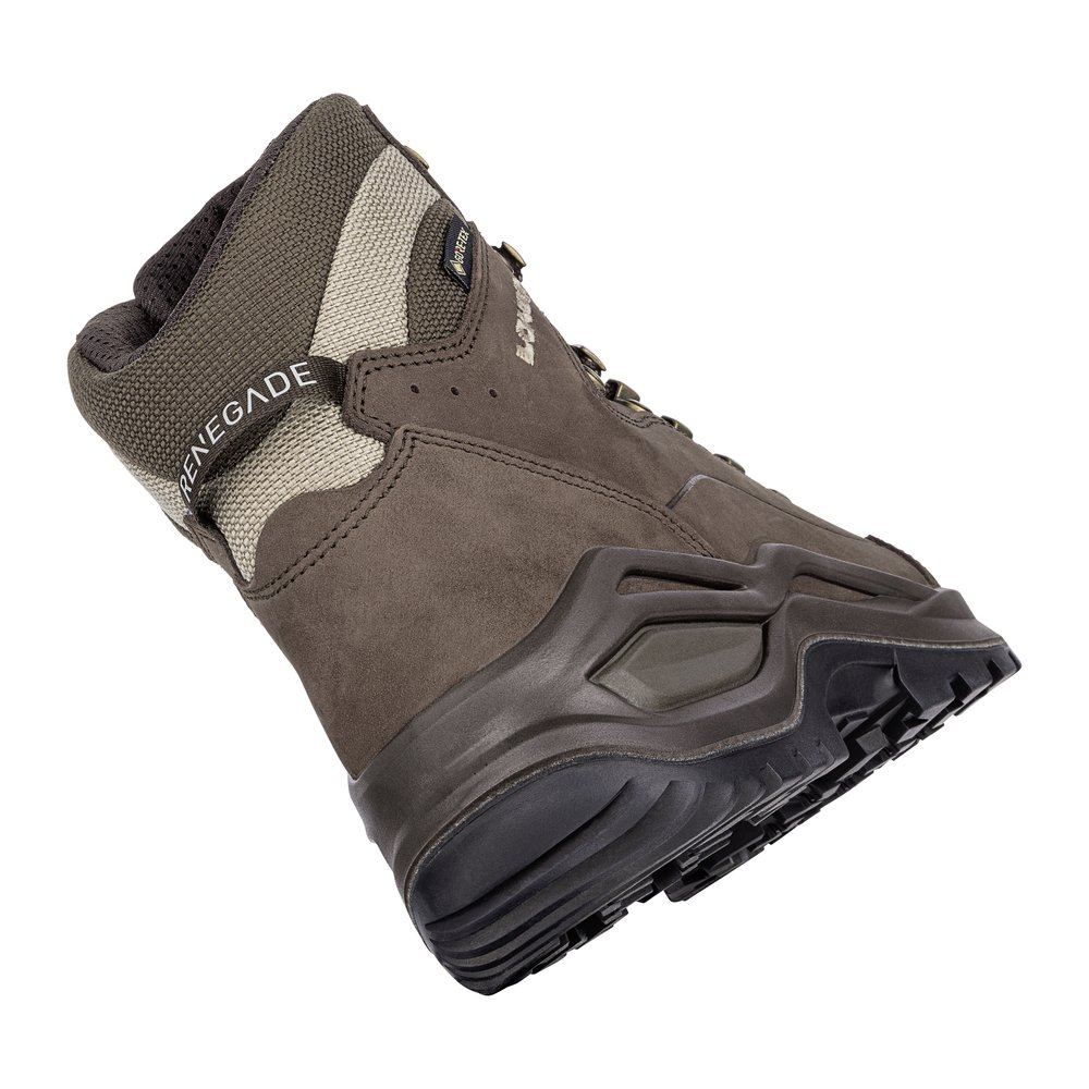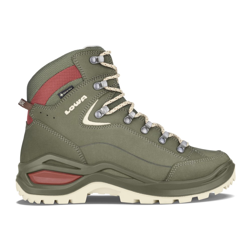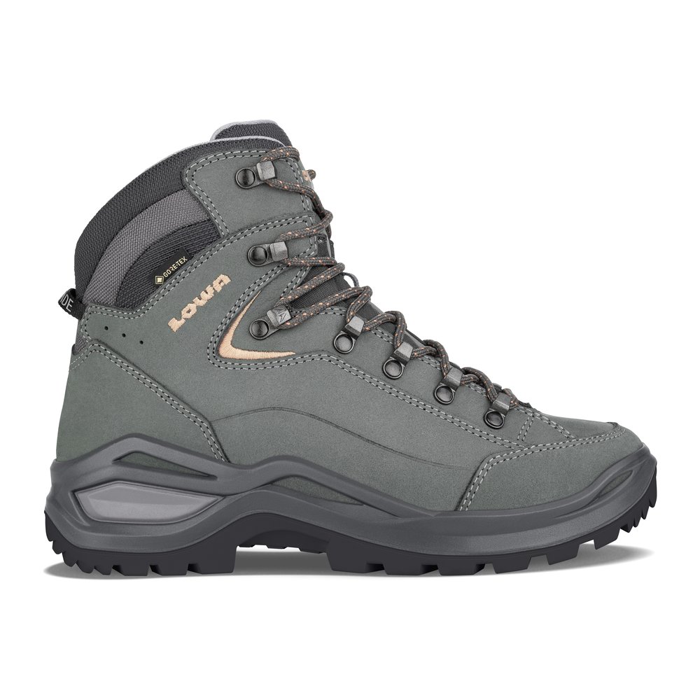 LOWA Renegade Evo GTX Mid Women – Wanderschuhe von LOWA sind der Inbegriff eines Klassikers. Der RENEGADE EVO GTX MID Ws wurde weiter optimiert, um noch mehr Komfort und Funktionalität zu bieten. Diese bequemen Multifunktionsschuhe zeichnen sich durch eine perfekte Passform, ausreichend Platz für die Zehen und ein modernes, stilvolles Design aus, das sowohl im Alltag als auch bei Outdoor-Aktivitäten überzeugt. Die VIBRAM RENE TRAC® Ws-Laufsohle sorgt mit ihrer multidirektionalen Profilausrichtung für hervorragenden Grip auf unterschiedlichsten Terrains und ermöglicht durch eine ausgeprägte Absatzkante ein angenehmes Abrollverhalten, das komfortable Auf- und Abstiege gewährleistet.