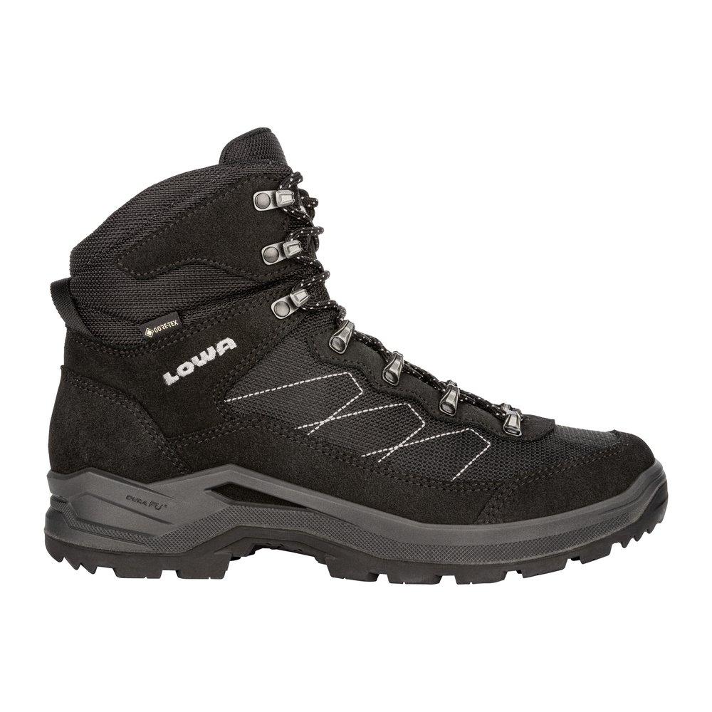 LOWA Taurus Pro GTX Mid Men ist ein vielseitiger und komfortabler Wanderschuh, der sich ideal für ausgedehnte Spaziergänge und Wanderungen auf befestigten Wegen eignet. Der Schuh überzeugt durch seinen MID-CUT-Schaft aus Veloursleder und robustem Textilgewebe, der eine gelungene Kombination aus Stabilität und Leichtigkeit bietet. Für trockene Füße sorgt das wasserdichte und atmungsaktive GORE-TEX-Futter, das auch bei schlechtem Wetter zuverlässigen Schutz bietet. Die LOWA® LIMA-Laufsohle mit ihrer multidirektionalen Profilausrichtung gewährleistet guten Halt in moderatem Gelände. Eine ausgeprägte Absatzkante unterstützt zusätzlich beim Bergabgehen und erhöht den Gehkomfort.