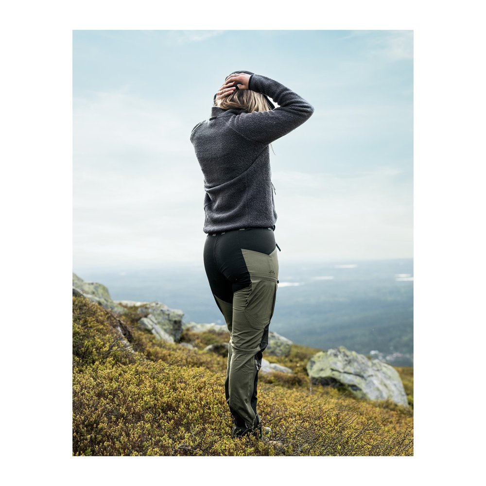 LUNDHAGS Makke Pant Women von Lundhags ist eine technisch ausgereifte Trekkinghose für anspruchsvolle Outdoor-Abenteuer. Sie kombiniert strapazierfähige Materialien, optimale Bewegungsfreiheit und eine schmale Passform. Das Hauptmaterial ist ein Mix aus Bio-Baumwolle und recyceltem Polyester mit mechanischem Stretch. Schoeller Dryskin-Stretcheinsätze an Gesäß, Knien und Schritt sorgen für ausgezeichnete Beweglichkeit und schnellen Feuchtigkeitstransport, während Schoeller Keprotec-Verstärkungen am Beinabschluss zusätzlichen Schutz bieten. Durchdachte Belüftungsreißverschlüsse sowie verstellbare Details wie Saum, Bund und Stiefelhaken machen diese Hose zu einem funktionalen Begleiter in unterschiedlichstem Terrain.