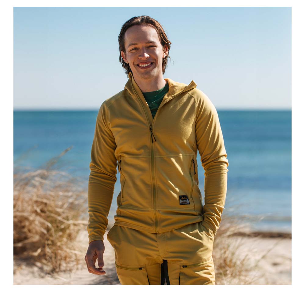 LUNDHAGS Tived Merino Hoodie Men ist ein hochfunktioneller Hoodie, der Sie bei kleinen und großen Abenteuern begleitet. Der Hoodie besteht aus einer technischen Mischung aus Merinowolle und recyceltem Polyester, die eine ausgezeichnete Temperaturregulierung und Geruchsresistenz bietet, während das Polyester die Haltbarkeit des Materials erhöht. Er kommt mit Daumenlöchern für zusätzliche Wärme, einer eng anliegenden Kapuze, die auch unter einem Helm passt, und einer athletischen Passform für optimale Bewegungsfreiheit. Der durchgehende Frontreißverschluss mit einer inneren Leiste schützt das Kinn und sorgt für einen komfortablen Sitz. Ideal als ganzjähriger Begleiter, ist der Tived Merino Hoodie Men sowohl leicht als auch einfach mitzunehmen, sodass er bei sämtlichen Outdoor-Aktivitäten stets eine gute Wahl ist.