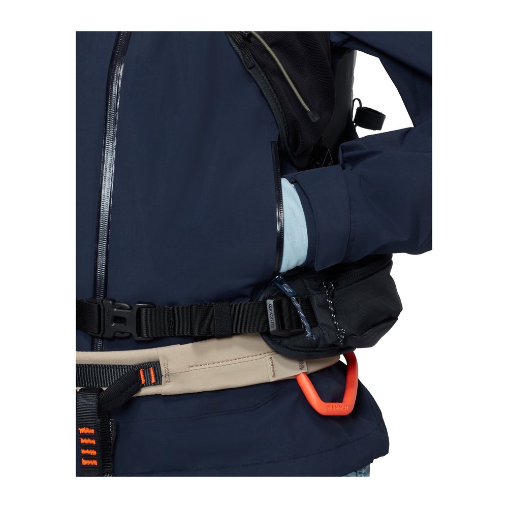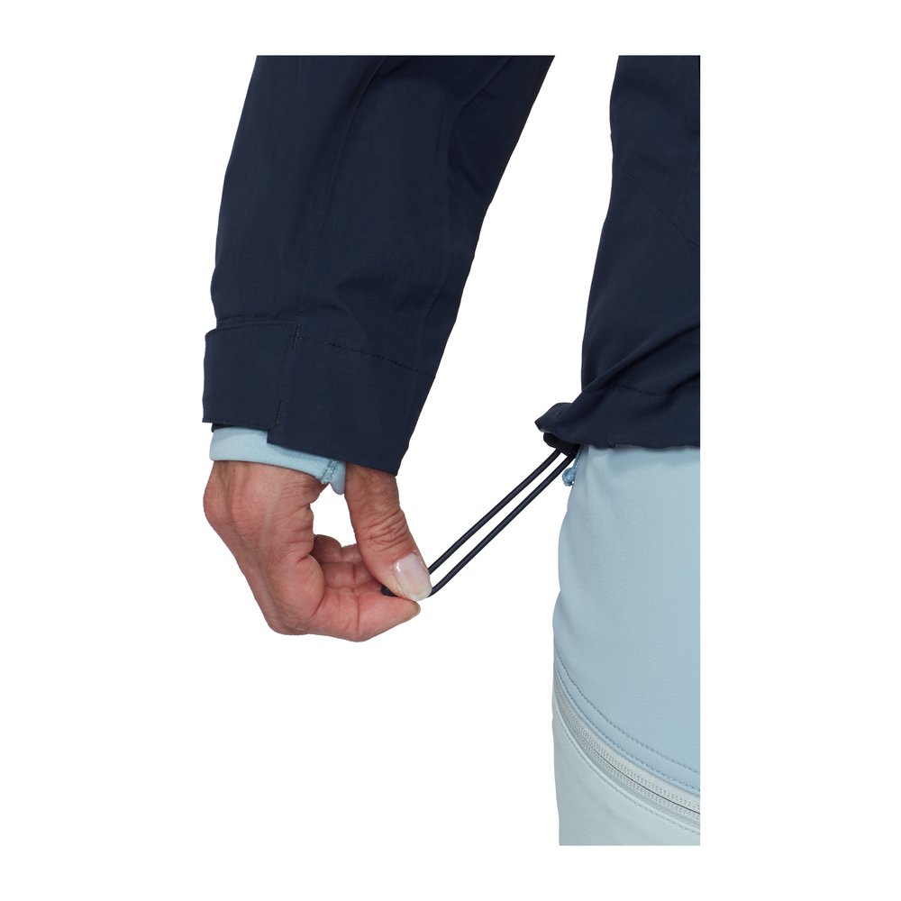 Die MAMMUT Crag HS Hooded Jacket Women ist deine verlässliche Wahl für unvorhersehbare Bedingungen bei alpinen Abenteuern. Dank des innovativen Mammut DRY Tour 2,5-Lagen-Laminats bietet diese Hardshelljacke einen wasserdichten Schutz, der dich auf jeder Bergtour trocken hält. Ein besonderes Konstruktionsmerkmal ist das 100 % recycelte Nylon-Obermaterial, das in Kombination mit einer PFC-freien DWR-Imprägnierung für effektive Abwehr gegen Feuchtigkeit sorgt. Wenn die Anstiege steiler werden, garantiert die Unterarm-Belüftung mittels Reißverschluss die nötige Frische. Die Jacke ist mit einer helmtauglichen, einfach verstellbaren Kapuze mit verstärktem Schirm ausgestattet, die auch bei Sturm perfekt sitzt. Praktische Details wie zwei rucksack- und klettergurtkompatible Reißverschlusstaschen sowie ein wasserabweisender Front-Reißverschluss machen sie zum funktionalen Allrounder im felsigen Gelände. Für eine optimale Bewegungsfreiheit sorgen vorgeformte Ärmel, während die regulierbare Saumweite und die Klettverschluss-Abschlüsse an den Armen die Wärme am Körper halten. Als Teil der Fair Wear Kollektion steht dieses Modell zudem für verantwortungsbewusste Herstellungsbedingungen.