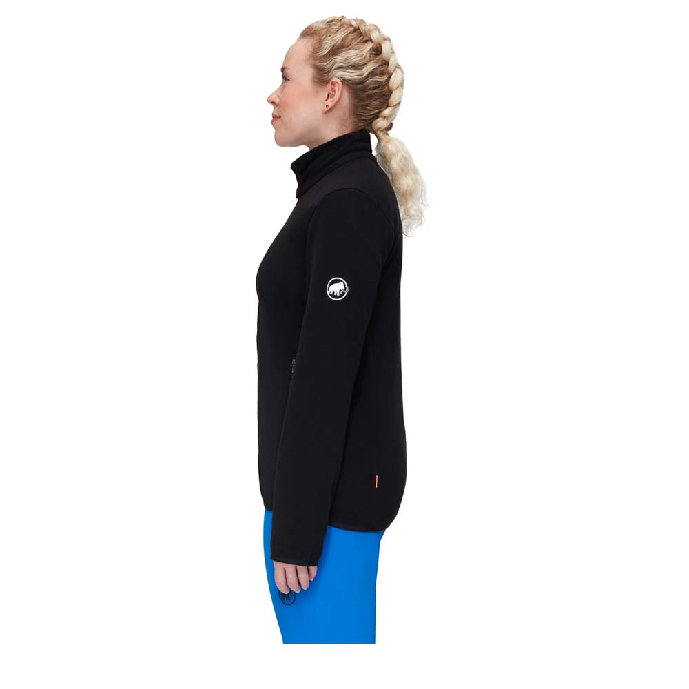 Angenehm leichte Damen Fleecejacke von Mammut für den ganzjährigen Einsatz. Ideal für kühle Sommerabende und als Midlayer im Winter. Die nachhaltige Fleecejacke besteht aus Recyclingpolyester und wird für eine reduzierte Umweltbelastung im Spinndüsenverfahren (Solution Dye) eingefärbt. Bei Schnitt und Farbauswahl haben wir darauf geachtet, dass weniger Materialreste entstehen.