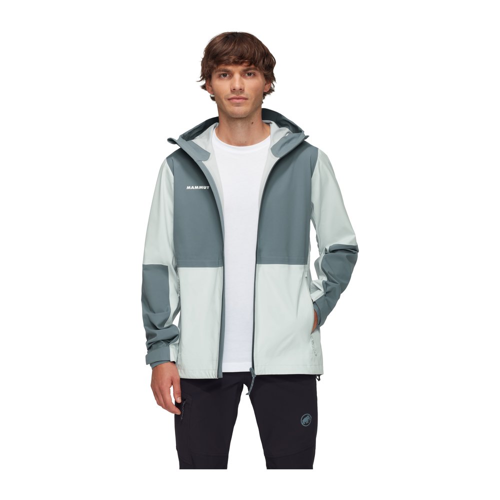 Mammut Linard Guide HS Hooded Jacket Men ist eine leistungsstarke Hardshelljacke, die bei Wind und Wetter zuverlässigen Schutz bietet. Das 3-lagige Mammut DRY Tour Laminat sorgt für Wasserdichtigkeit und hohe Atmungsaktivität, sodass die Performance auch bei anstrengenden Touren nicht eingeschränkt wird. Das Material ist leicht, dehnfähig und zu 100 % aus Polyester gefertigt, wodurch die Jacke nicht nur angenehm zu tragen, sondern auch recyclingfreundlich ist. Mit verstellbarer Kapuze mit verstärktem Schirm, wasserabweisenden Reißverschlüssen, Unterarm-Belüftung und regulierbarem Saum ist sie optimal auf Outdoor-Abenteuer im Regen ausgerichtet.