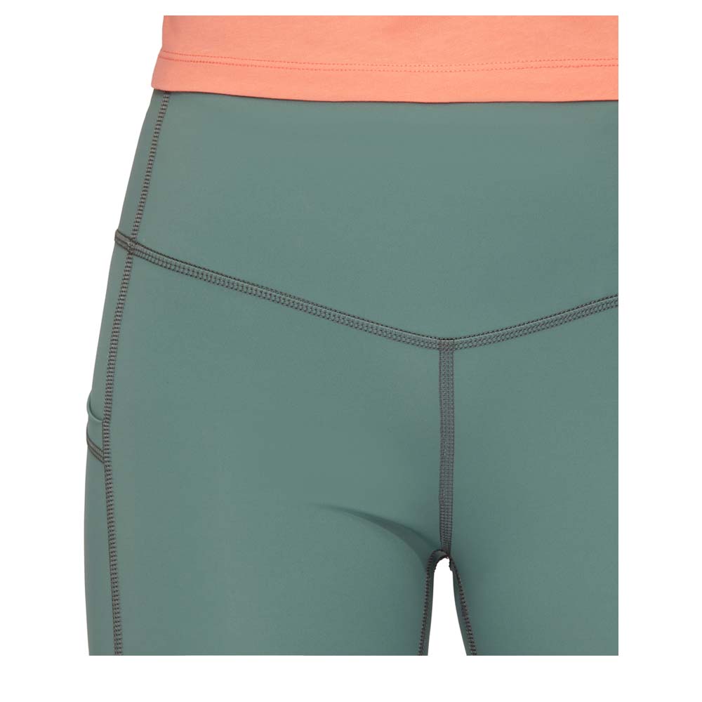 Die Massone Leggings von Mammut bedeckt alles, was bedeckt gehört. Und ihr Stoff hält hartnäckig blickdicht – egal wie man auch stretchen und verbiegen mag. Innen im Bund haben wir eine Mini-Tasche versteckt, die Schlüssel oder Bankkarte Platz bietet. Den Smartphone kriegt man in einer Aussentasche verstaut. Extrem angenehm: Keine zentrale Naht im Schritt und auf der Bein-Innenseite. Da reibt nichts, da drückt nichts.
