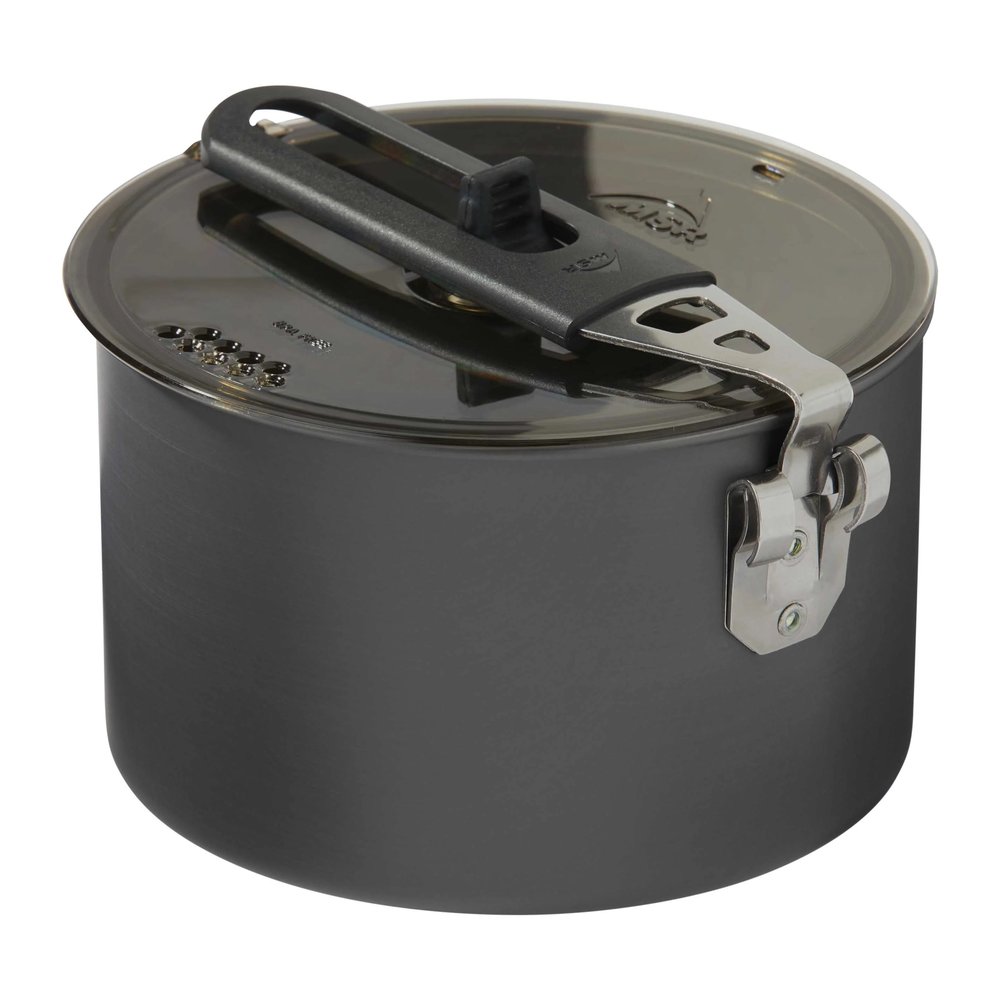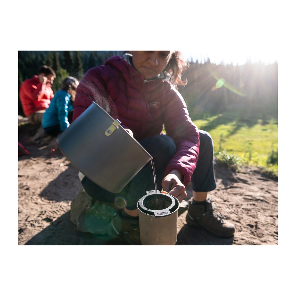 MSR Trail Lite Pot ist ein kompakter, robuster Kochtopf, der in zwei Größen – 1,3 Liter und 2,0 Liter – erhältlich ist und sich ideal für Solo- oder Duo-Touren eignet. Gefertigt aus hartanodisiertem Aluminium, bietet er eine ausgezeichnete Kombination aus Leichtgewicht, Langlebigkeit und effizienter Hitzeverteilung. Die stabile Konstruktion ist kratzfest und pflegeleicht, perfekt geeignet für das Kochen von Wasser oder einfachen Mahlzeiten unterwegs. Das platzsparende Design ermöglicht es, Becher, Besteck oder kleine Kocher im Topfinneren zu verstauen. Ein faltbarer, arretierbarer Griff sorgt für sicheren Halt beim Kochen und kompakten Transport im Rucksack.