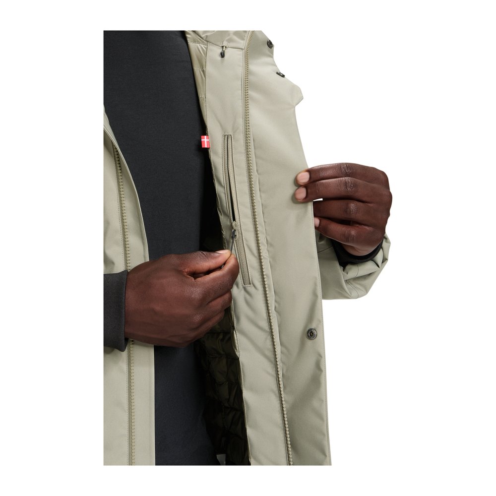 NORDISK Lauge Hardshell Down Jacket Men von NORDISK ist ein funktionaler Herrenmantel, der wasserdicht, atmungsaktiv und mit Crystal Down® Dry Daunen isoliert ist. Mit seinem klaren, urbanen Look und technischer Ausstattung eignet er sich sowohl für den Alltag als auch für Outdoor-Touren. Die XD Tech-Membran mit vollständig versiegelten Nähten bietet zuverlässigen Schutz vor Nässe, während die hydrophoben Daunen für Wärme und Komfort sorgen. Trotz der starken Isolierung bleibt das Gewicht mit nur 980 g (Größe L) gering. Eine zweifach verstellbare Kapuze mit Schirm, Rippbündchen an den Ärmeln und ein regulärer Schnitt erhöhen den Tragekomfort. Praktische Details wie zwei versteckte Handtaschen, zwei Aquaguard®-Brusttaschen und eine Innentasche runden den Mantel ab. Gefertigt aus recycelten Materialien und PFC-frei steht Lauge für Schutz, Funktionalität und Nachhaltigkeit.