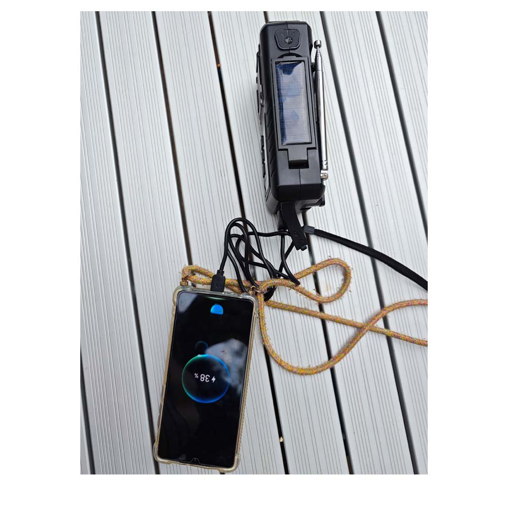 - Ladezeit per Handkurbel 15 Minuten für ca. 5 Minuten Radio