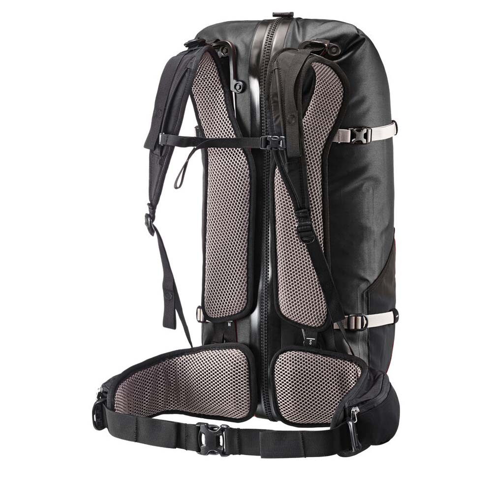 Das PVC-freie Nylongewebe ist besonders robust und schützt bei richtiger Anwendung nicht nur vor Regen, sondern hält auch bei kurzzeitigem Untertauchen dicht. So musst du selbst beim Kentern mit dem Kanu nicht auf trockene Wechselkleidung verzichten. Statt mühsam nach den untenliegenden Sachen zu kramen, benutzt du den Atrack einfach wie eine Reisetasche: Dank des rückseitigen Reißverschlusses, kannst du schnell auf deine Sachen zu greifen. Das höhenverstellbare Rückensystem ermöglicht es, den Rucksack auf deine Rückenlänge einzustellen.