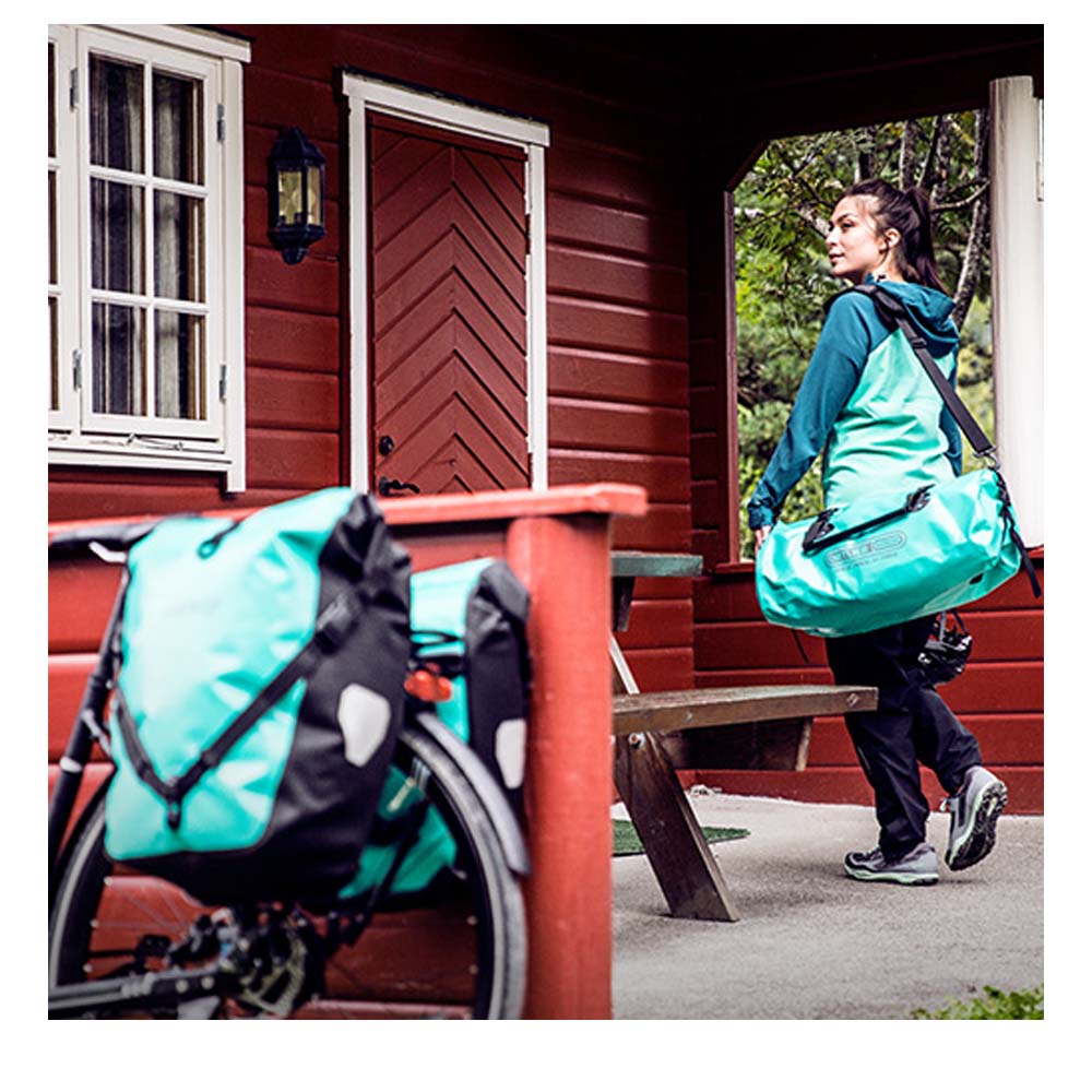 Die Reise- und Sporttasche Ortlieb Rack-Pack Free besteht aus PU-beschichtetem Polyestergewebe (PVC-frei). Die Beschichtung sorgt dafür, dass eine dauerhafte Wasserdichtigkeit gewährleistet werden kann. Kombinieren lässt sich die Sport- und Reisetasche mit Back-Rollern oder Sport-Rollern auf dem Hinterradgepäckträger. Das robuste Planen-Material verschafft der Ortlieb Rack-Pack Free Langlebigkeit. Auch Kanu- und Motorradfahrer kommen mit ihr auf ihre Kosten - die Wasserdichtigkeit ist über IP-67 zertifiziert. Durch die große Öffnung kann man die Tasche leicht beladen und ihr Inneres verfügt über ein großes Fassungsvermögen. Der Rollverschluss und die Kompressionsgurte verringern bei Bedarf das Packmaß. Das Ortlieb Rack-Pack Free lässt sich hervorragend, um zusätzlichen Stauraum zu gewinnen, auf bereits vorhandene Ortlieb Fahrrad-Seitentaschen mit den dafür vorgesehenen Elementen befestigen. Und natürlich ist die Ortlieb Rack-Pack Free nachhaltig made in Germany!