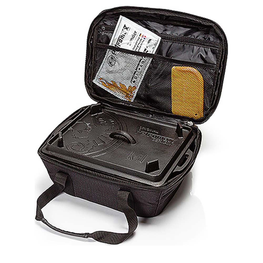 In dieser Transporttasche von Petromax kann die Kastenform k8 einfach und elegant verstaut werden. Die Tasche aus robustem Ripstop-Gewebe, bestickt mit dem Petromax Logo bietet somit eine sichere und hochwertige Transport- und Aufbewahrungsmöglichkeit. Der Taschendeckel beherbergt im Inneren eine geräumige Reißverschlusstasche sowie zwei Netzeinschubtaschen. So können Zubehör-Teile wie z. B. Petromax Zunder, Mini- oder Profi-Gasbrenner einfach verstaut und mitgeführt werden.