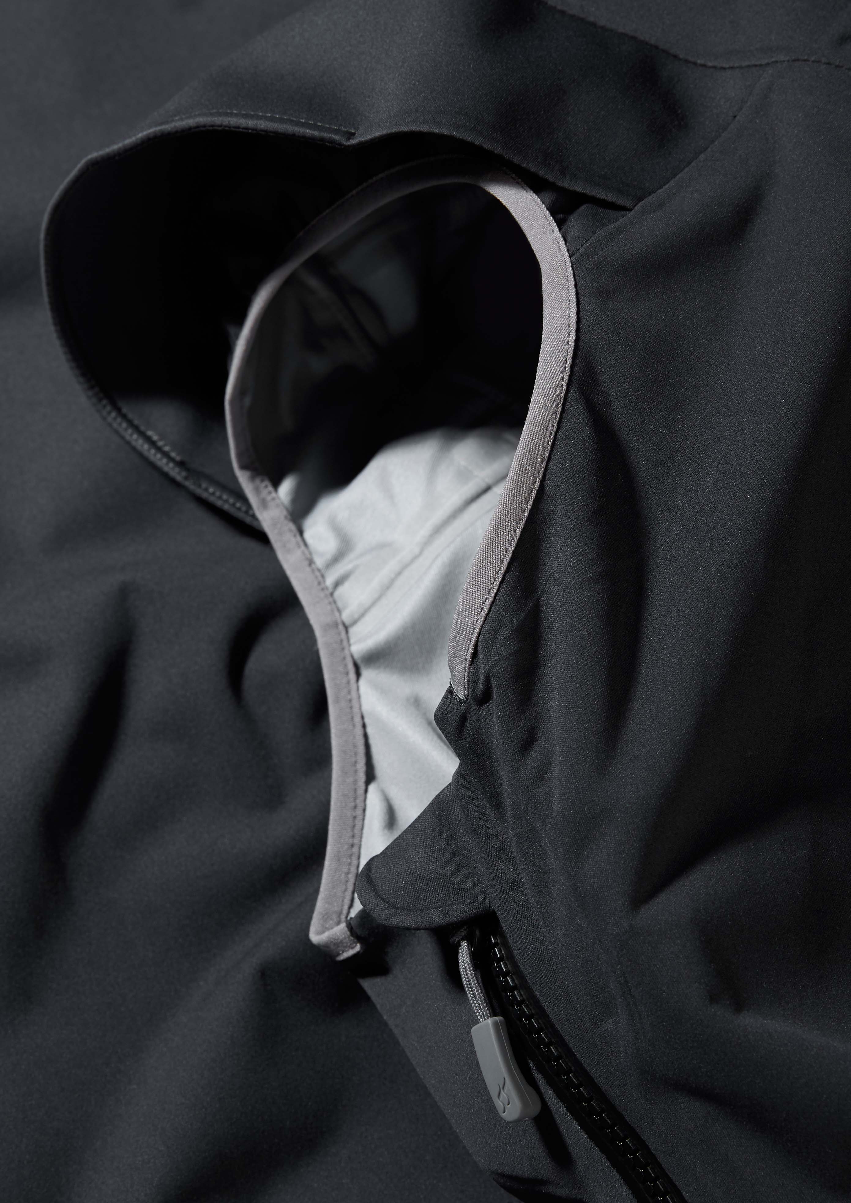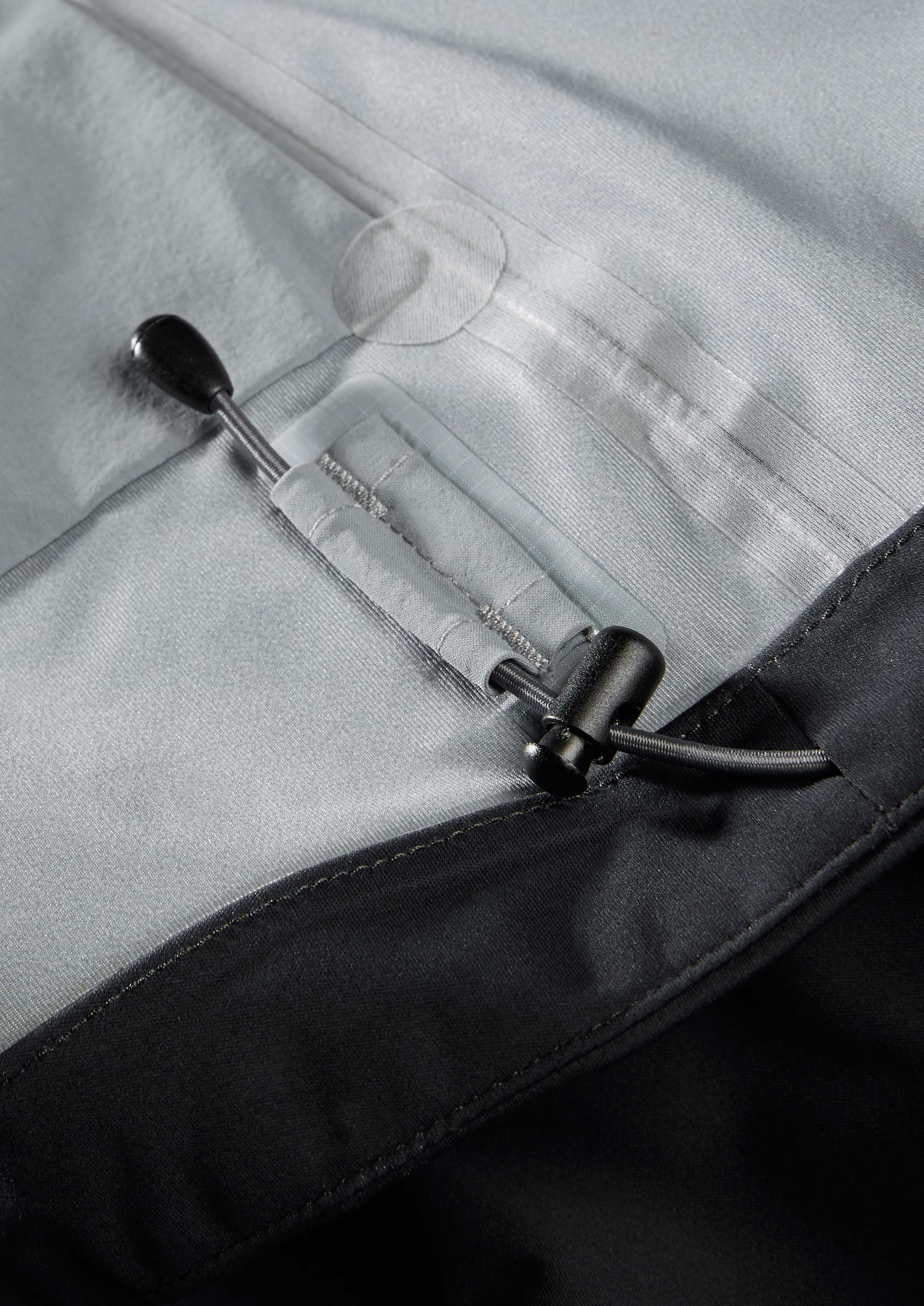 - Fester und flexibler Polymer-Schirm an der helmtauglichen und weitenregulierbaren Kapuze