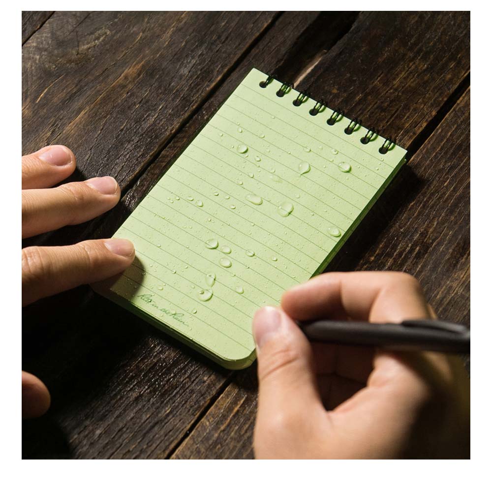 Der Einband besteht aus widerstandsfähigem PolyDura, einem robusten Kunststoff, der das Papier zusätzlich schützt. Die Drahtbindung sorgt für eine stabile Verbindung der Seiten und ermöglicht ein einfaches Umblättern. Der Notizblock ist so konzipiert, dass er problemlos in jede Tasche passt und somit immer griffbereit ist.