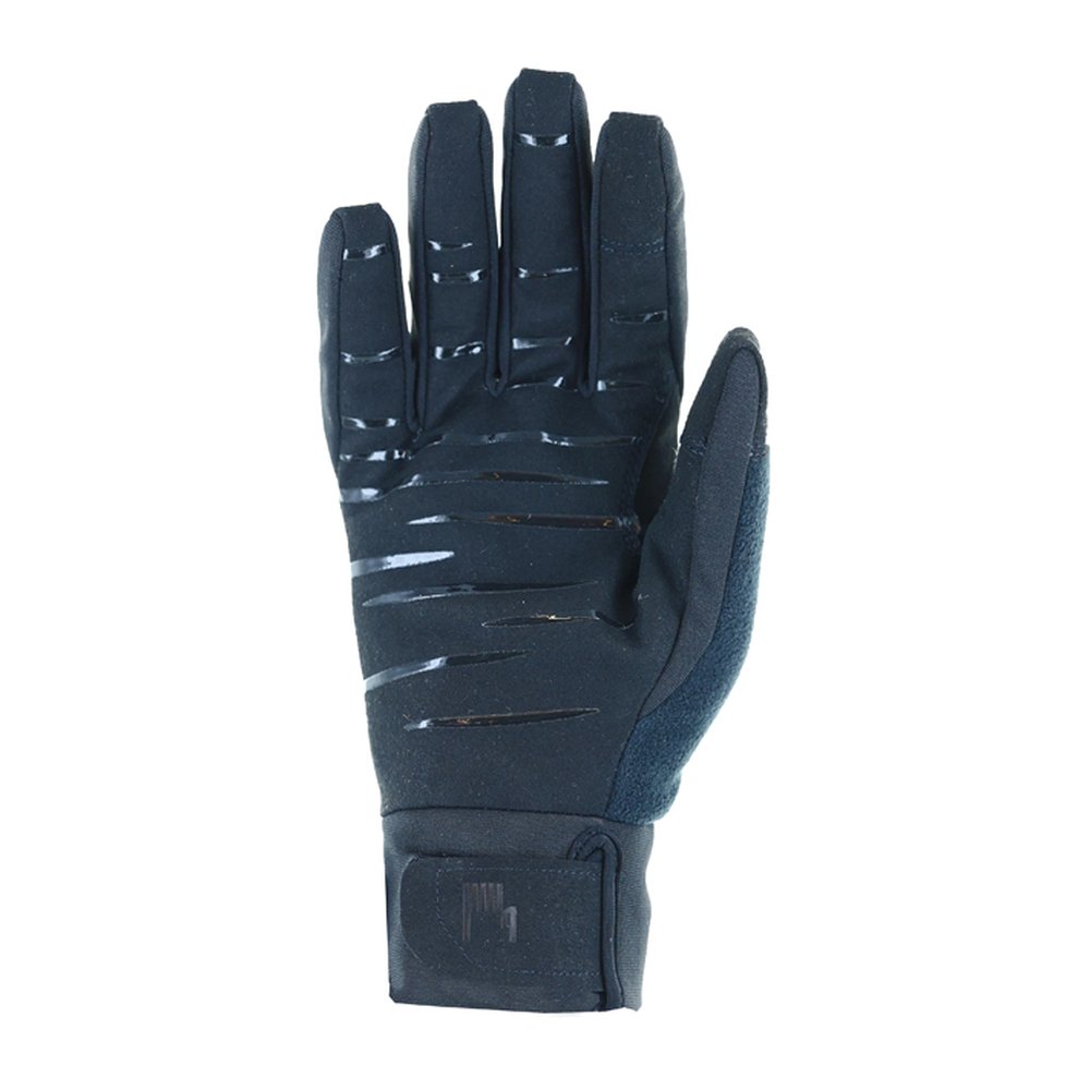 Rutschfeste Silikonstreifen an der Handinnenfläche bieten sicheren Grip, während der ergonomische Schnitt mit vorgekrümmten Fingern das Greifen erleichtert. Daumen und Zeigefinger sind touchscreen-kompatibel. Der weiche Fleece-Besatz am Daumen dient als praktisches Wischtuch. Weitere Features sind eine kurze Neopren-Stulpe mit Kletterschluss, eine abnehmbare Sicherheitsschlaufe, eine Karabiner-Schlaufe am Ringfinger sowie Verstärkungen an den Fingerkuppen. Reflektierende Designelemente erhöhen die Sichtbarkeit.