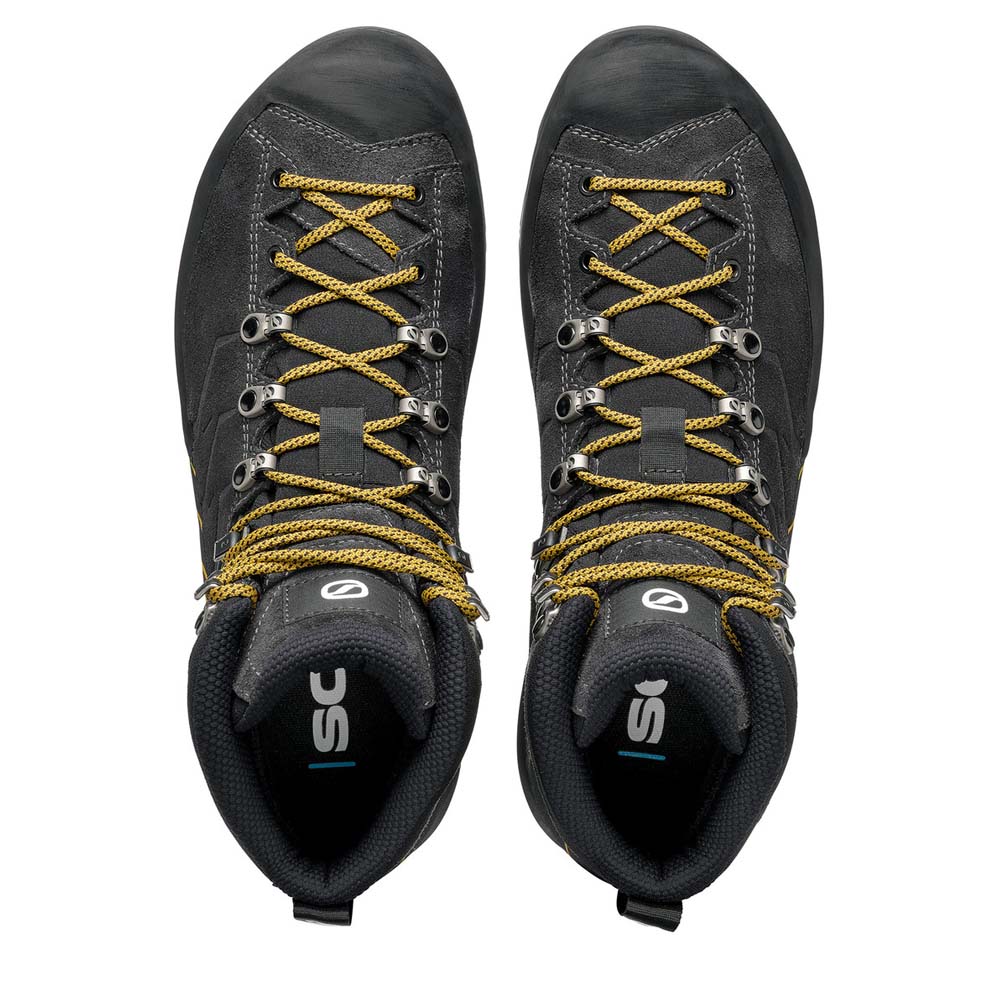 Der Mescalito TRK GTX für Herren von Scarpa wurde für lange Wanderungen entwickelt und garantiert Grip, Komfort, Halt und Strapazierfähigkeit unter der Last eines schweren Rucksacks. Das Suede Leder Obermaterial mit Gore-Tex® Membran bietet Schutz, Unterstützung und Abriebfestigkeit und das GORE-TEX® Extended Comfort Futter sorgt für Wasserdichtigkeit und Atmungsaktivität. Die Zunge ist beidseitig mit dem Obermaterial verbunden, bleibt gut zentriert und verhindert das Eindringen von Schmutz in den Schuh. Das leichte Gewebe von SCHOELLER (DYNATEC) ist ideal für Outdoor-Aktivitäten, bei denen hoch atmungsaktive, wasser- und winddichte Ausrüstung erforderlich ist. Durch die hohe Elastizität der Membran lässt sich das Material für mehr Bewegungsfreiheit maßschneidern, um so die Leistung zu steigern. Die neue DYNAMIS TRK Sohle mit PU-Zwischensohle in Bi-Density garantiert Langlebigkeit, Komfort und eine optimierte Stabilität. Die Konstruktion der Sohle besteht aus Materialien, die in der Lage sind, Stöße mit dem Boden zu absorbieren und die Belastung der unteren Gliedmaßen zu reduzieren.