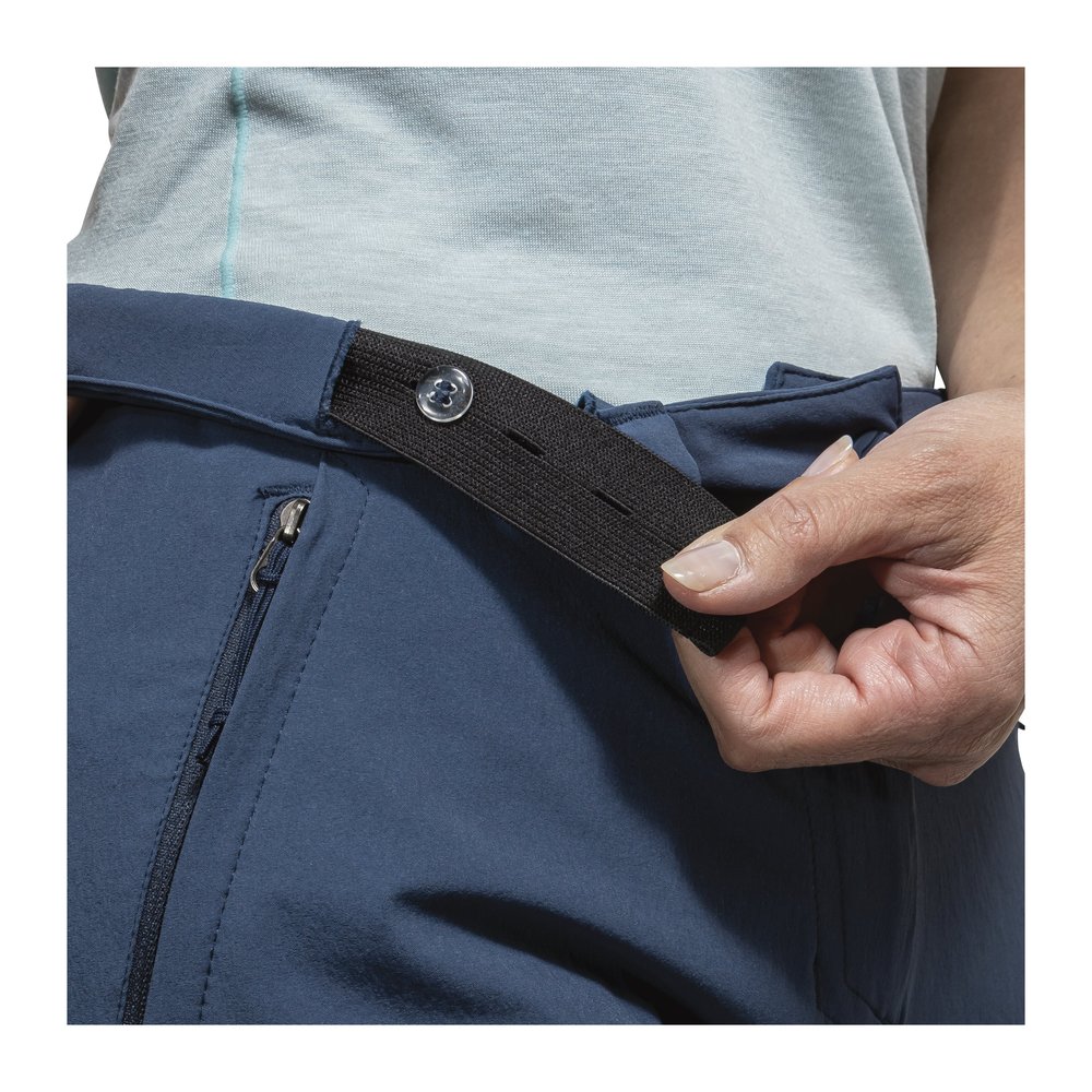 SCHÖFFEL Pants Engadin1 Women ist eine funktionale Wanderhose, die dank S.Cafe® Ice-Cafe™ Technologie ein angenehm kühlendes Tragegefühl bietet. Das robuste Gewebe mit 4-Wege-Stretch sorgt für hohe Bewegungsfreiheit, während das schnelltrocknende Material Feuchtigkeit effizient ableitet. Ein innenliegender, verstellbarer Bund ermöglicht eine präzise Anpassung, ergänzt durch vorgeformte Knie für eine optimale Passform. Reißverschlusstaschen und strapazierfähige Eigenschaften runden das Modell für vielseitige Outdoor-Einsätze ab.