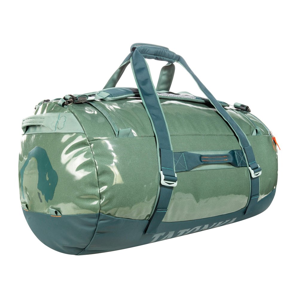 Die Tatonka Barrel 85, ausgestattet mit abnehmbaren Rucksackträgern, bietet mit ihrem Volumen von 85 Litern genügend Platz für das Gepäck einer ein- bis zweiwöchigen Reise. Die Tasche verfügt über breite Tragegriffe und Handgriffe an allen vier Seiten, was das Handling über kurze Strecken, beim Flughafen-Check-in oder beim Verstauen im Auto erleichtert. Hergestellt aus robustem, pflegeleichtem TPU-beschichtetem Nylon, bietet der gepolsterte Boden zusätzlichen Schutz für den Inhalt. Die große Öffnung der Tasche erleichtert das Packen, während kleinere Gegenstände in der flachen Netztasche unter dem Deckel oder in zwei Einsteckfächern Platz finden. Eine voluminöse Reißverschlusstasche an der Außenseite bietet weiteren Stauraum. Bei Bedarf lässt sich das Volumen der Barrel 85 durch die außenliegenden Kompressionsriemen reduzieren.