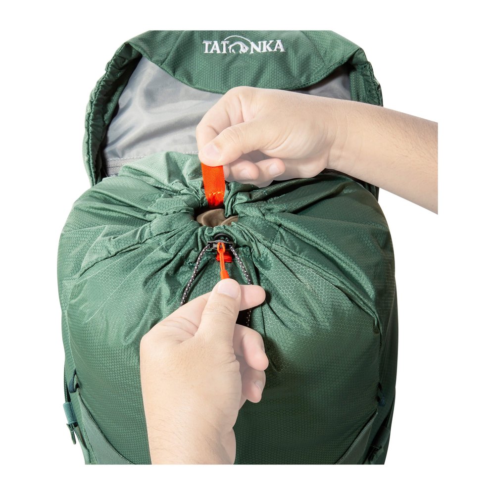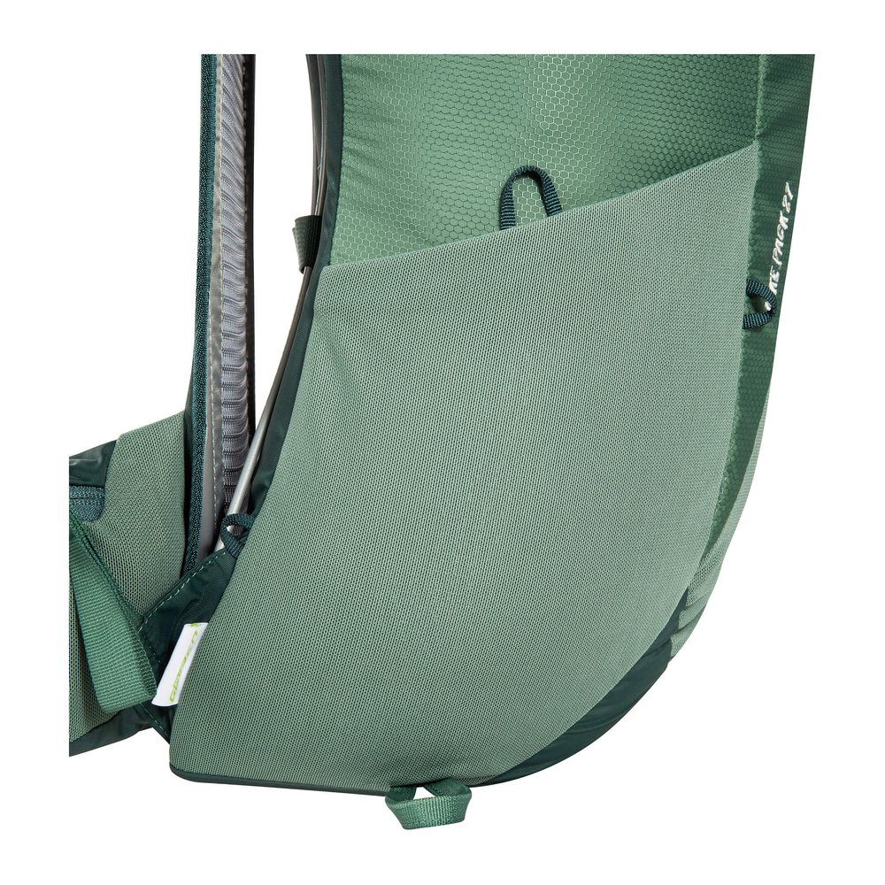 Der Tatonka Hike Pack 27 Wanderrucksack, mit einem Volumen von 27 Litern, ist ideal für Zwei- oder Dreitageswanderungen oder als Familienrucksack geeignet. Das Frame Vent-Rückensystem passt sich angenehm dem Rücken an und das Abstandsnetz gewährleistet eine optimale Belüftung. Eine zusätzliche Einstellung des Systems ist nicht nötig, da es sich flexibel jeder Bewegung anpasst. Der Rucksack wird mit einem Hüft- und Brustgurt sicher am Rücken fixiert. Ausrüstung kann im Hauptfach, Deckelfach, in der Fronttasche sowie in zwei Seitentaschen verstaut werden. Wanderstöcke lassen sich in der speziell dafür vorgesehenen Halterung befestigen. Im Hauptfach gibt es zudem ein Fach für eine Trinkblase und einen Schlauchdurchlass. Eine Regenhülle rundet die Ausstattung ab. Zudem ist der Rucksack PFAS-frei.