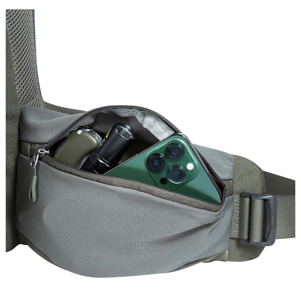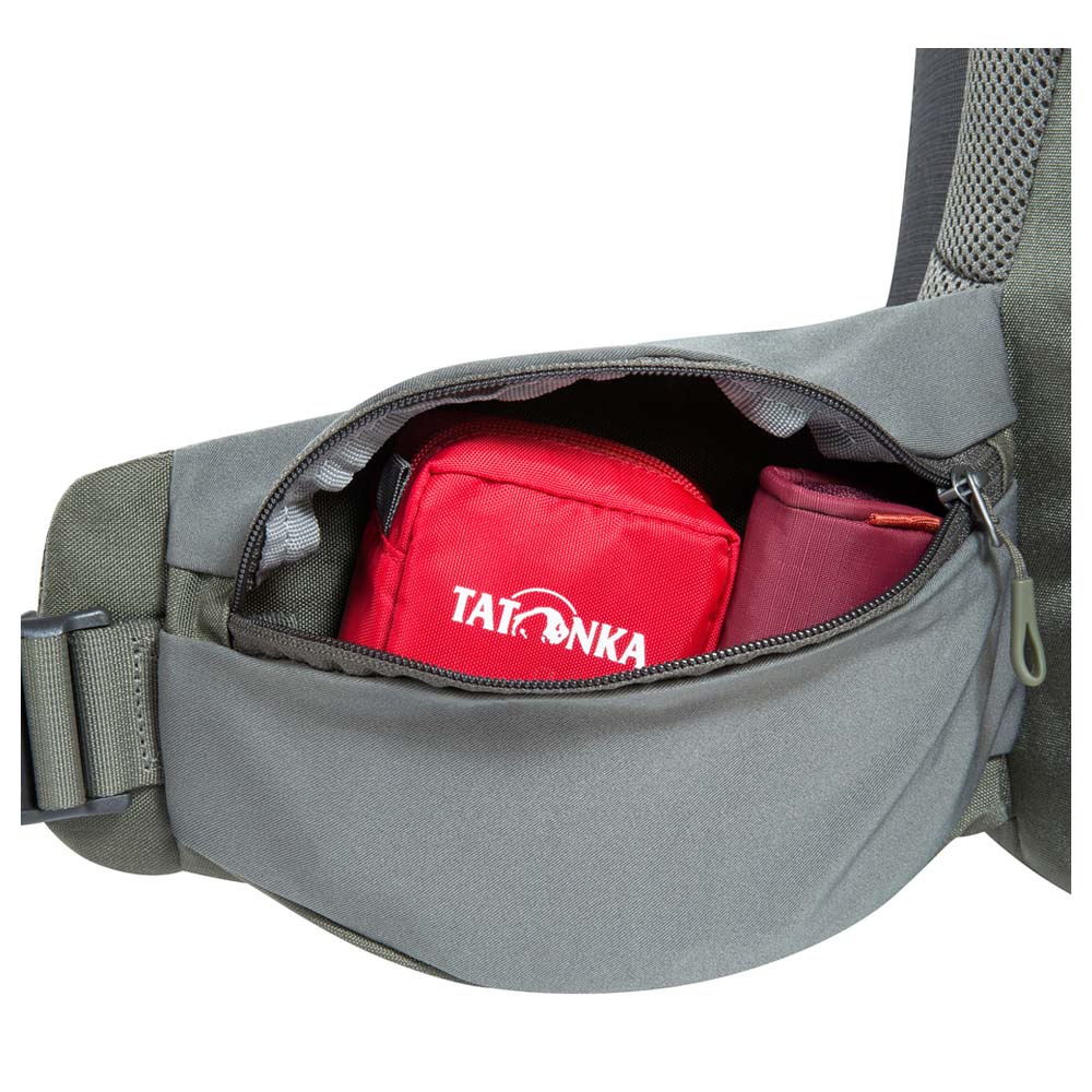 • Hüftgurt mit Reißverschlusstasche auf einer Hüftflosse
