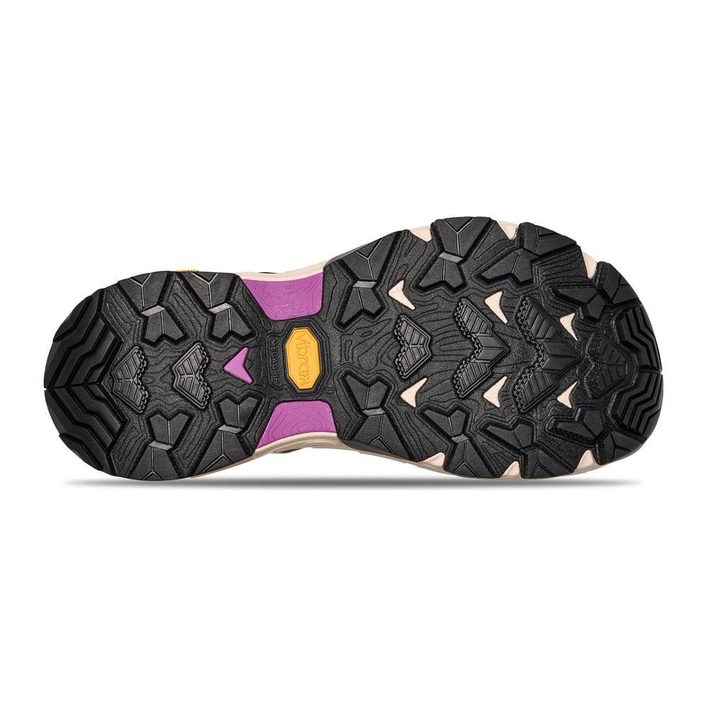 Die TEVA Grandview Max Sandal Women bietet eine ideale Lösung für mehrtägige Wanderungen in anspruchsvollem Gelände. Diese Sandalen wurden speziell für schwierige, schwer zugängliche Bereiche entwickelt und bieten dank des innovativen patentierten W Strapping Systems eine individuelle Anpassung und Unterstützung. Die LITE-COMF®-Zwischensohle sorgt für langanhaltenden Komfort auf den Trails, während die Vibram MegaGrip-Außensohle für exzellente Traktion und Langlebigkeit sorgt. Zusätzliche Achillessehnenpolster bieten extra Halt und ein integrierter Mudguard schützt vor seitlichen Stößen und Abrieb. Das atmungsaktive und feuchtigkeitsabweisende Material sorgt dafür, dass der Fuß auch bei längeren Touren kühl und trocken bleibt. Für die umweltbewussten Wanderer wurden bei der Herstellung 100% REPREVE®-recycelte Polyester-Gurte und ein 100% recyceltes Mesh-Obermaterial verwendet.