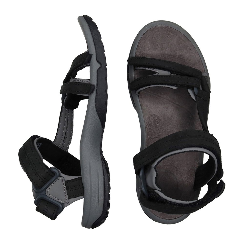 Die TEVA Tirra Leather Women von Teva ist eine hochwertige Outdoorsandale für Damen, die mit einer auf schmale Frauenfüße zugeschnittenen Passform überzeugt und sich ideal für längere Strecken sowie den vielseitigen Einsatz im Alltag oder bei leichten Touren eignet. Die Kombination aus griffiger Spider Original-Laufsohle und Shoc Pad im Fersenbereich sorgt für zuverlässige Trittdämpfung und Halt auf verschiedensten Untergründen. Die Riemen aus wasserfest behandeltem Nubukleder bieten nicht nur Stabilität, sondern auch einen edlen Look. Dank verstellbarer Klettverschlüsse über Spann und Vorderfuß lässt sich die Sandale optimal anpassen. Die vorgeformte EVA-Zwischensohle sowie das weich gepolsterte Mikrofaserfußbett garantieren dauerhaften Tragekomfort. Für zusätzliche Stabilität sorgt eine in die Zwischensohle integrierte Polyamidplatte zur Mittelfußunterstützung. Hinweis: Alle Größen von TEVA basieren auf US-Größen.