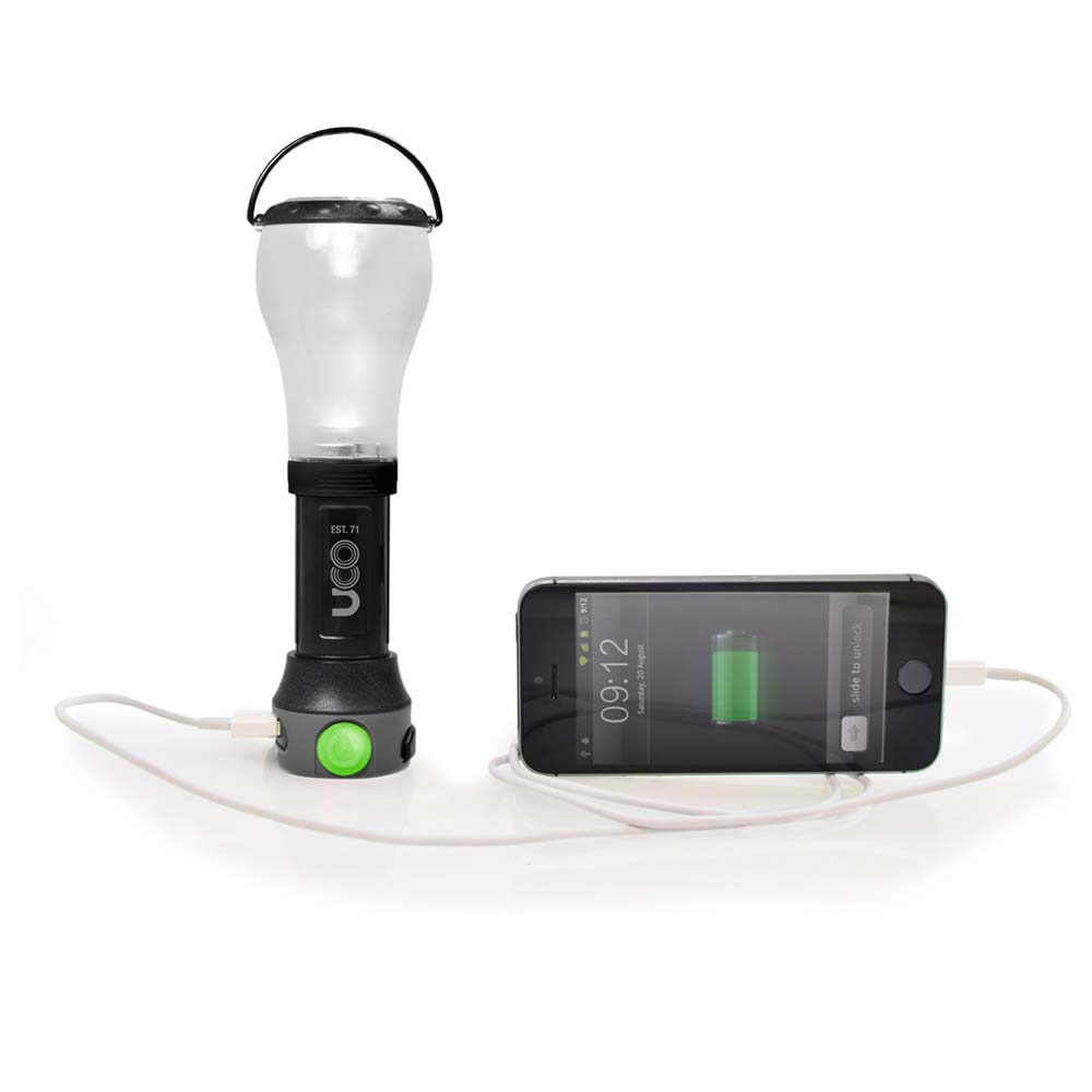 Die UCO Pika LED-Laterne ist eine Kombination aus Laterne und Taschenlampe. Sie ist wasserfest (IPX 5), lässt sich zusammenschieben und kann wieder aufgeladen werden. Man verwendet sie bei Freizeitaktivitäten, beim Camping oder in den eigenen vier Wänden. Die LED-Laterne kann sogar kleine elektronische Geräte (Handy, Kamera oder GPS) via USB aufladen. Damit sie auch für den Außeneinsatz gerüstet ist, verfügt sie über ein stabiles ABS/TPE Gehäuse. Die Helligkeit der Laterne kann stufenlos gedimmt werden und zusätzlich ist sie mit einem Blitzmodus ausgestattet. Ein Haken zum Aufhängen erleichtert die Unterbringung der Leuchtquelle. Über eine LED-Anzeige wird der Akkustand kommuniziert und auch der Ladestatus wird ersichtlich.
