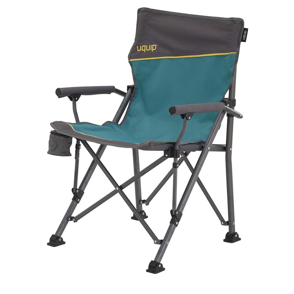 Der Folding Chair Roxy von UQUIP verfügt durch den Einsatz von qualitativ hochwertigen Materialien über eine hervorragende Stabilität und eine sehr hohe Traglast von bis zu 120kg. Die breiten Füße des Klappstuhls schützen auch auf weichen Untergründen gegen Einsinken. Der hohe Sitzkomfort und die clevere Ausstattung mit Getränkehalter und integriertem Flaschenöffner, machen ihn zum idealen Begleiter für Festival-, Camping- oder Wochenendtrips.