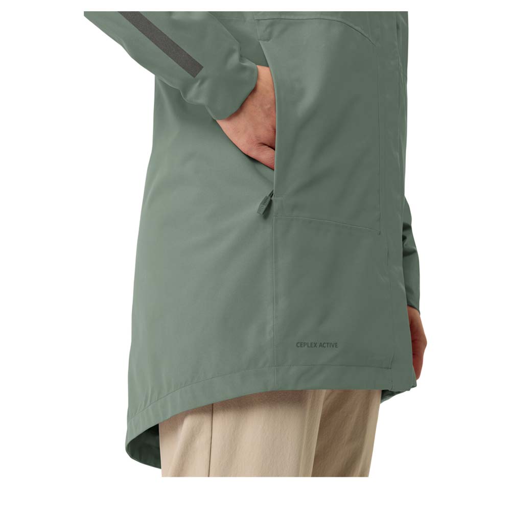 Mit dem warmen VAUDE Cyclist Padded Parka II Women Bike-Winterparka hast du einen echten Tausendsassa für die Stadt. Dieser Wetterschutzparka ist perfekt fürs Rad - mit Schlitz hinten und 2-Wege-Reißverschluss vorne sowie reflektierenden Elementen an Ärmeln und Rücken. Eine leichte PrimaLoft® Black Eco Wattierung sorgt dabei für angenehme Wärme. Auch wenn es stürmt, regnet oder schneit - die in den Mantel eingearbeitete Ceplex Active® Membran hält dich bei der täglichen Fahrt zur Arbeit trocken. Der Women's Cyclist padded Parka II ist mit Eco Finish umweltfreundlich wasserabweisend ohne Fluorcarbone (PFC) hergestellt. Das VAUDE Green Shape-Label steht für ein umweltfreundliches, funktionelles Produkt aus nachhaltigen und bluesign® zertifizierten Materialien.