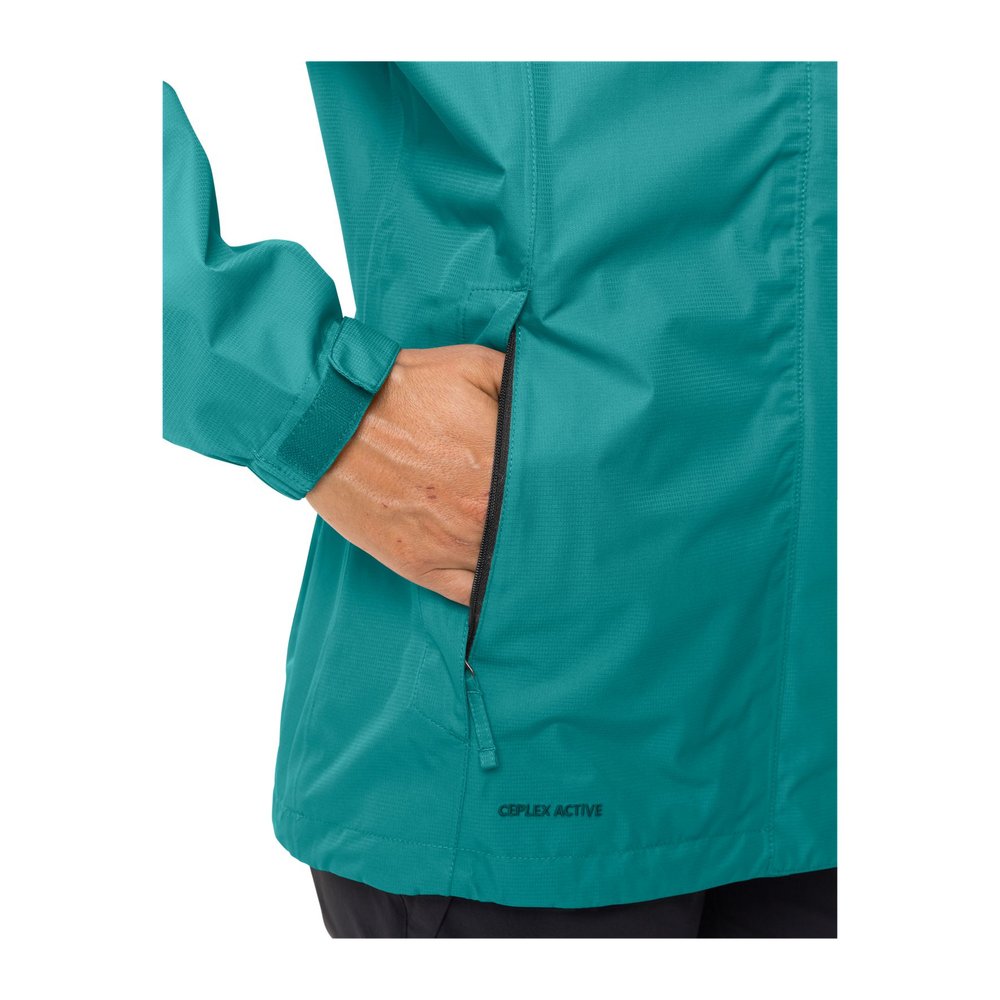 VAUDE Escape Light Jacket Women – die leichte, wasserdichte und atmungsaktive Regenjacke für Damen. Sie ist ideal für Wanderungen und Freizeitaktivitäten. Die Jacke bietet Wind- und Regenschutz und lässt sich bei Nichtgebrauch die Kapuze im Kragen verstauen. Mit zwei Reißverschlusstaschen bietet sie ausreichend Stauraum, und der Zwei-Wege-Reißverschluss ist leicht reparierbar. Die Jacke verfügt über verstellbare Ärmelbündchen und Saum (per Klettverschluss und Kordeln), um die Passform individuell anzupassen. Mit der Ceplex Active-Membran ist sie besonders funktional und schützt zuverlässig vor Wind und Regen.