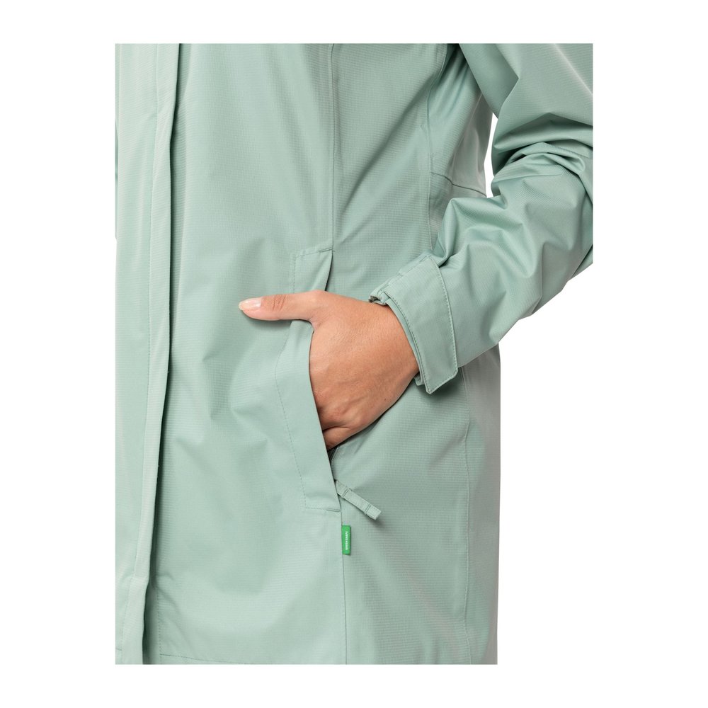 Vaude Escape Parka Women ist ein lässiger Damen-Regenparka, der das ganze Jahr über ein perfekter Begleiter ist. Vaude hat diesen Parka entwickelt, um zuverlässigen Schutz vor Wind und Regen zu bieten. Er ist wasser- und winddicht und besteht überwiegend aus recyceltem Polyester. Der Parka verfügt über einen 2-Wege-Reißverschluss und eine verstellbare Kapuze, die im Kragen verstaut werden kann. Die teilweise elastischen Armabschlüsse und die zwei Front-Reißverschlusstaschen bieten zusätzlichen Komfort und Stauraum.