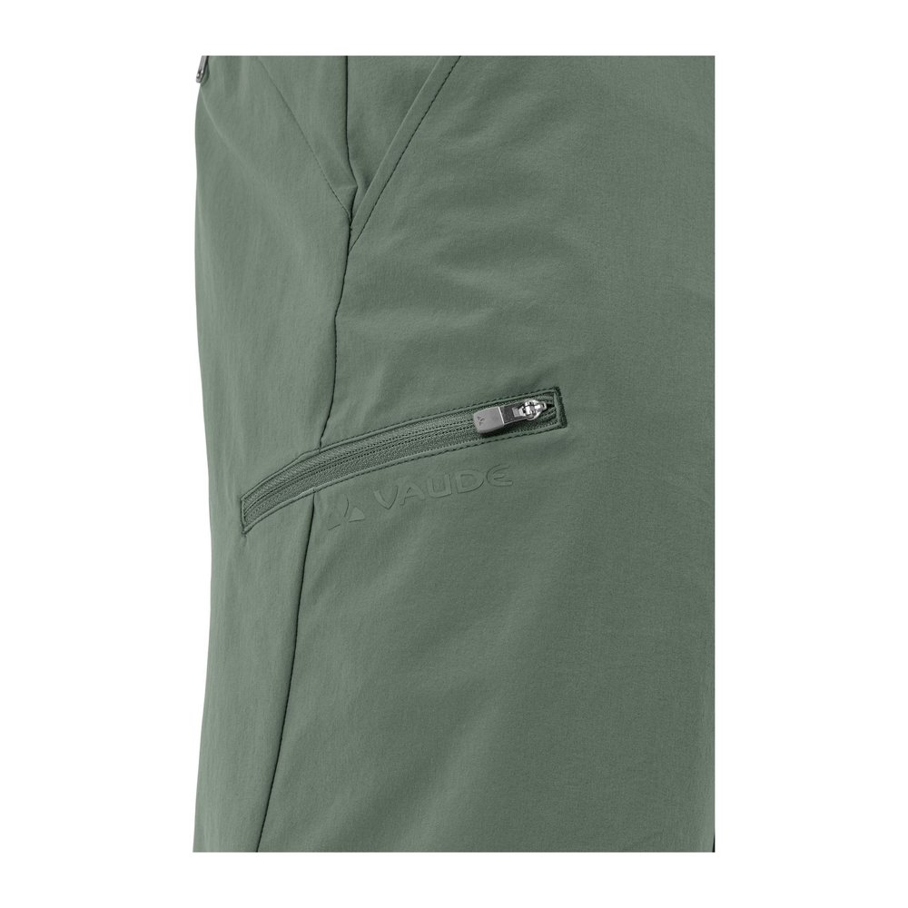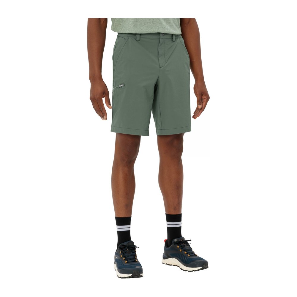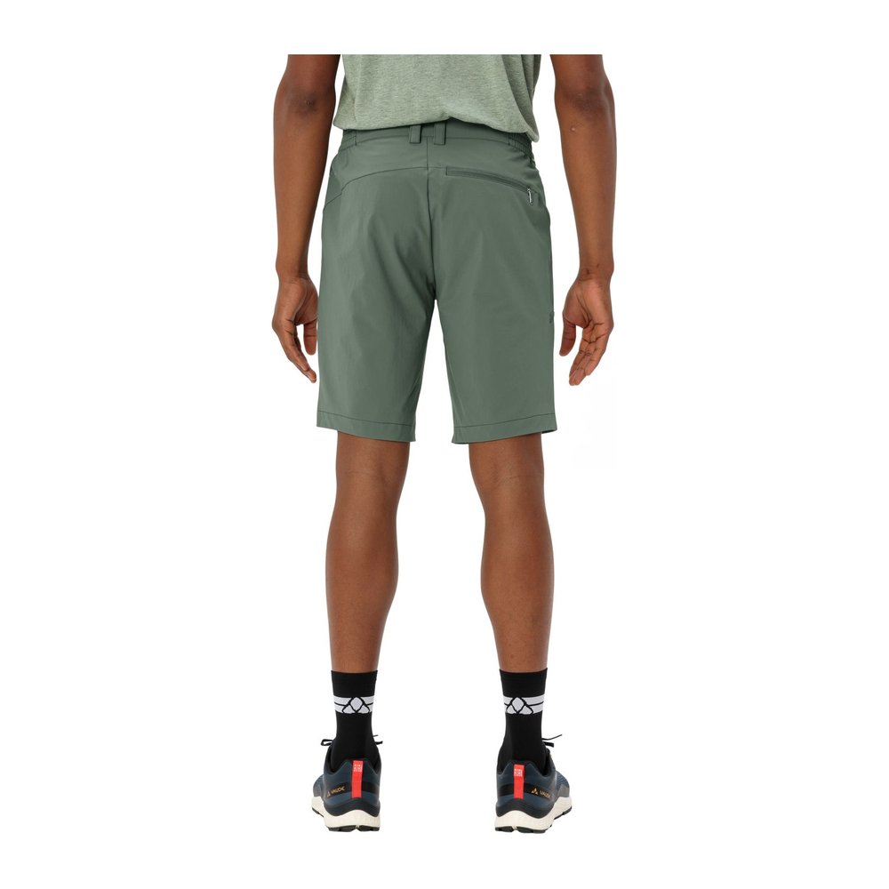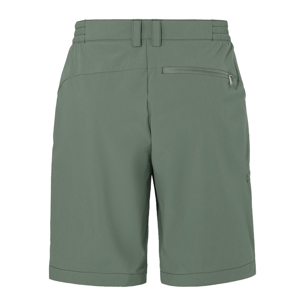 Vaude Farley Stretch Bermuda II Men - Shorts ist die ideale Wahl für Wander- und Trekkingtouren. Diese elastische Herren-Bermuda überzeugt durch ihren hohen Tragekomfort und die optimale Bewegungsfreiheit im Gelände. Der hohe Stretchanteil sorgt dafür, dass die Shorts bequem und flexibel sind, während das strapazierfähige und schnelltrocknende Material auch bei intensiven Aktivitäten standhält. Hergestellt aus bluesign® zertifiziertem Polyamid, ist die Bermuda nicht nur funktional, sondern auch klimafreundlich dank einer innovativen Herstellungsmethode über ein Massenbilanzverfahren. Die praktischen Eingrifftaschen sowie die Beintasche mit Reißverschluss bieten ausreichend Platz für kleine Utensilien, während die UPF 50-Eigenschaft einen optimalen Schutz vor schädlichen UV-Strahlen bietet. Zusätzlich sorgt das Eco Finish dafür, dass die Shorts wasser- und schmutzabweisend sind und damit besonders pflegeleicht bleiben.