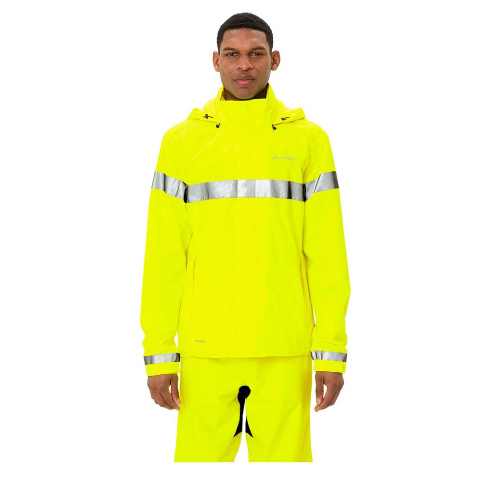 Die VAUDE Luminum Rain Jacket Men ist dein ultimativer Begleiter für graue Regentage und Pendelstrecken, bei denen Sichtbarkeit und Wetterschutz an erster Stelle stehen. Bei dieser Regenjacke sorgt das 2-Lagen-Material mit Ceplex Active Membran für eine dauerhafte Wind- und Wasserdichtigkeit, während sie gleichzeitig eine gute Atmungsaktivität bietet, damit du auch bei aktiver Fahrweise nicht ins Schwitzen gerätst. Ein wesentliches Konstruktionsmerkmal sind die großflächigen 360° Reflex-Elemente, die deine Sichtbarkeit bei schwierigen Lichtverhältnissen massiv erhöhen, wobei die umweltfreundliche Eco Finish Imprägnierung Wasser und Schmutz einfach von der Oberfläche abperlen lässt. Für den nötigen Komfort bei ungemütlichem Wetter verfügt das Modell über eine angeschnittene, weitenregulierbare Kapuze, die sich im Kragen verstauen lässt, sowie einen geteilten Futterstoff aus Mesh und Taffeta für ein angenehmes Tragegefühl. Abgerundet wird das funktionale Design durch regulierbare Ärmelbündchen und einen Kordelzug im Saum, mit denen du die Jacke perfekt an deine Bedürfnisse anpassen kannst, während die vorgeformten Ärmel für eine natürliche Passform in jeder Position sorgen.