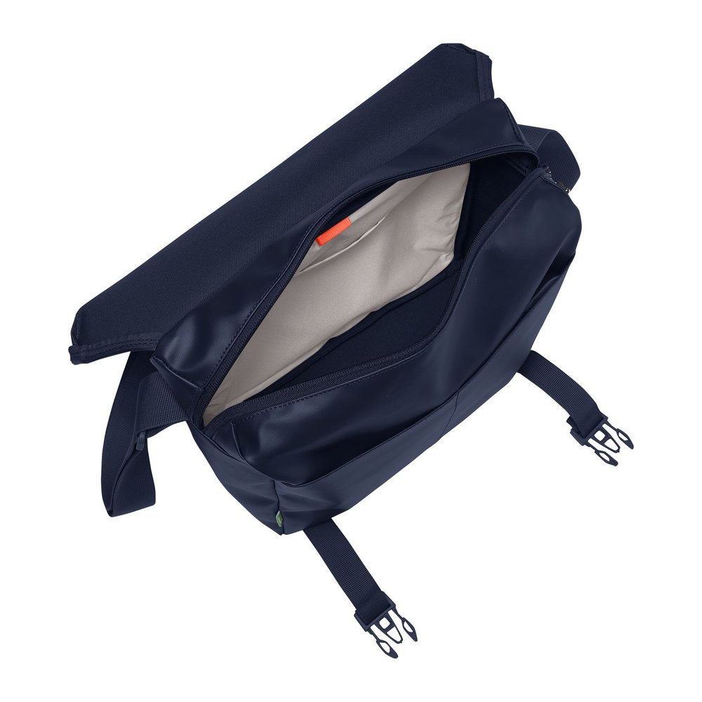 VAUDE Mineo Messenger 9 ist eine praktische Messenger-Tasche für den urbanen Alltag. Sie überzeugt mit einer durchdachten Innenaufteilung, in der alle wichtigen Dinge wie Trinkflasche, Notizblock und Snacks Platz finden. Ein separates Reißverschlussfach am Rücken ermöglicht schnellen Zugriff auf Smartphone und Geldbeutel. Dank der Trolley-Aufsteckfunktion lässt sich die Tasche bequem auf einem Rollkoffer befestigen. Der schräg angenähte Gurt sorgt für einen optimalen Sitz, während das reflektierende Band am Deckel vielseitig genutzt werden kann, z. B. zum Befestigen eines Fahrradschlosses. Das Material ist PVC-frei, wasser- und schmutzabweisend und wird aus recycelten PET-Flaschen hergestellt. VAUDE setzt sich als Fair Wear Leader Member für faire Arbeitsbedingungen und Löhne ein.