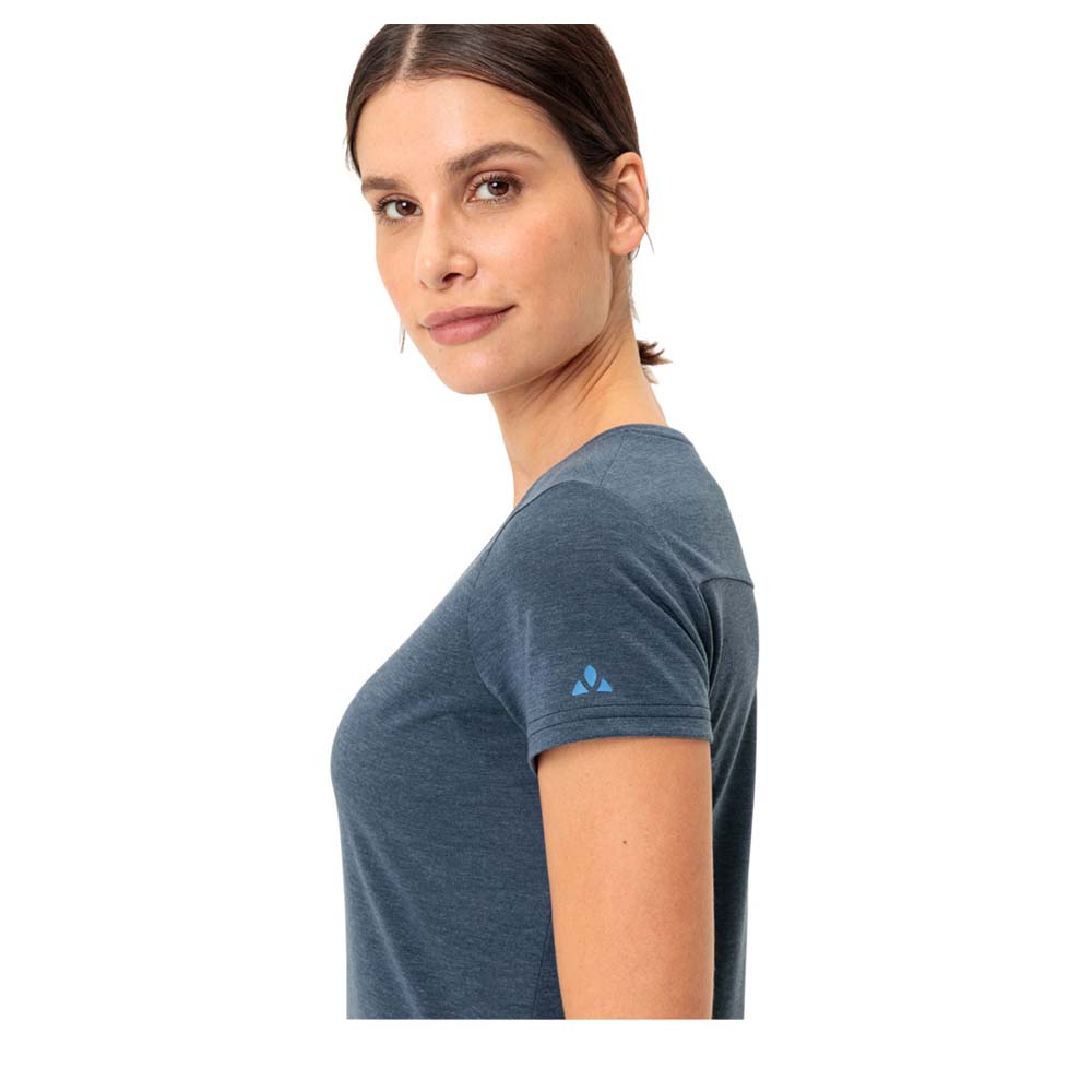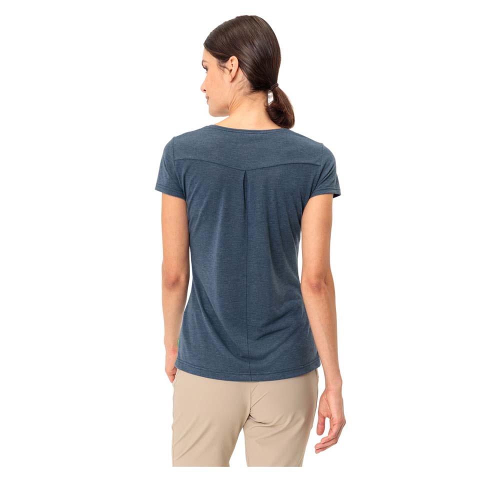 Das taillierte Damen T-Shirt von Vaude besteht aus 75 % recyceltem Polyester und 25 % Woodfiber . Die natürliche Faser aus Holz sorgt für einen leicht kühlenden Effekt und verhindert Gerüche bei schweißtreibenden Wanderungen, während das recycelte Polyester schnell trocknet und Feuchtigkeit vom Körper weg transportiert. Das Wandershirt ist feminin geschnitten und liegt angenehm an, so dass auch mit Rucksack nichts drückt oder reibt. Die dekorative Falte am Rücken und der Druck machen aus dem T-Shirt ein funktionelles Shirt für moderate Wanderungen und Tagestouren und ein pflegeleichtes Kleidungsstück für jeden Tag. Das VAUDE Green Shape-Label steht für ein umwelt- und klimafreundliches, funktionelles Produkt aus bluesign® zertifizierten, nachhaltigen Materialien.