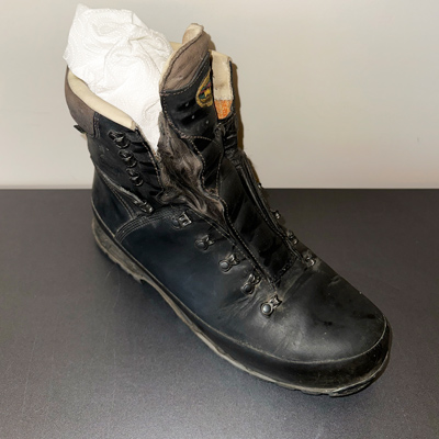 Stopfe deine Schuhe mit Zeitungspapier aus und lass sie langsam an der Luft trocknen. Vermeide direkte Sonne oder Heizquellen, da diese das Material austrocknen oder Klebungen lösen können.